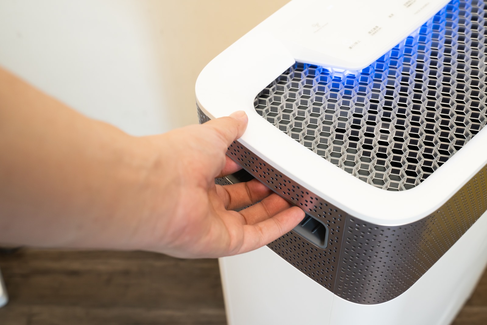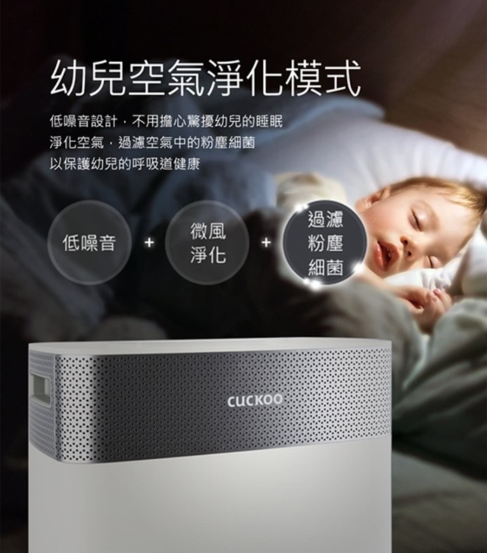 如果阿輝在睡覺時則會使用睡眠模式或者是幼兒空氣淨化模式,這兩個模式除了會讓機體運作的噪音降到最小之外,連空氣品質狀況的顯示燈號也都可以熄滅,減少睡眠時的干擾光害,讓淺眠的阿輝睡眠品質更佳提升。幼兒空氣淨化模式也兼具有自動除菌的功能可使用,一般家庭的話則非常適合使用在小孩房給小孩作使用。