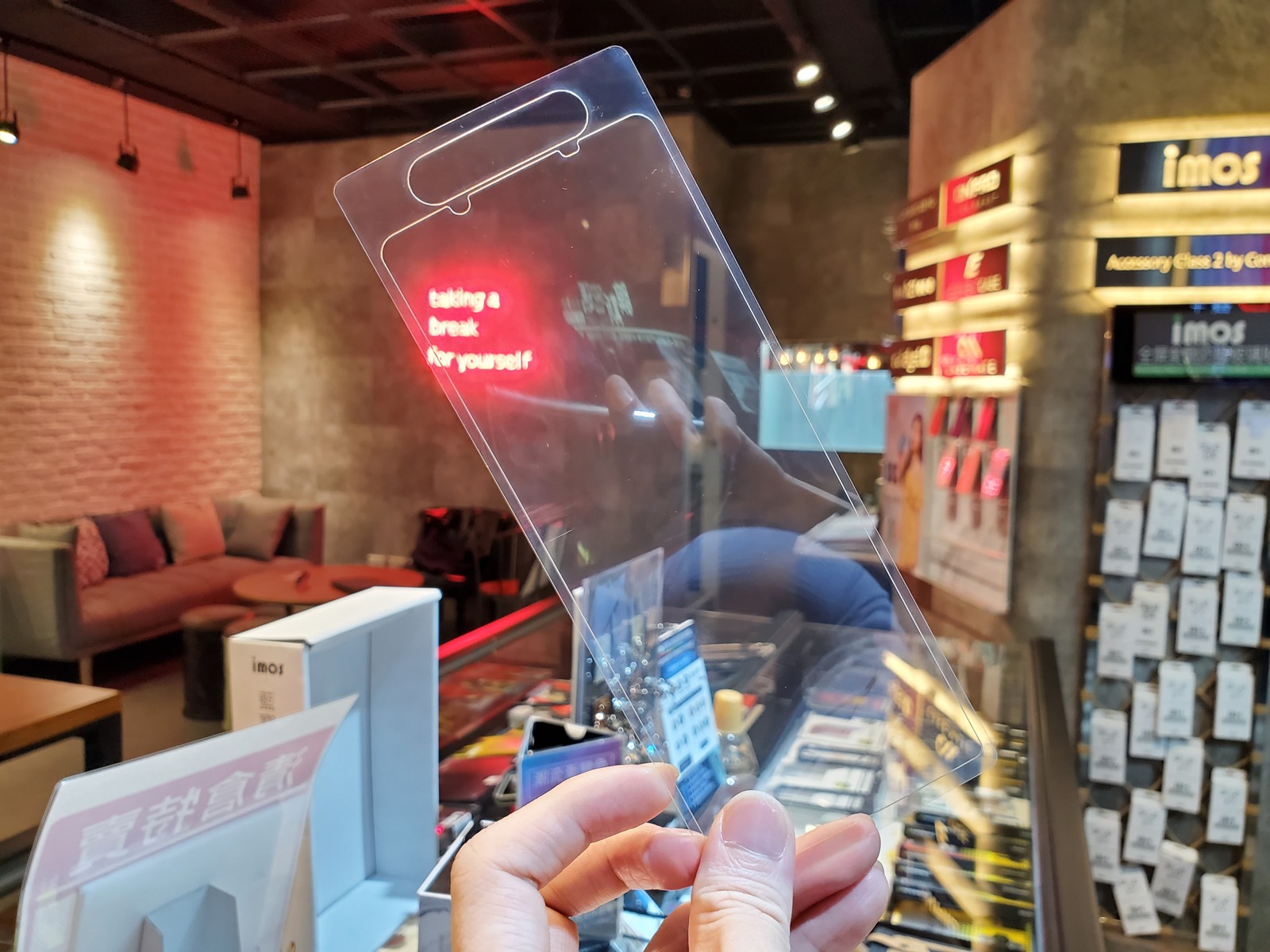 這次 imos 上方前鏡頭有開孔,能有效閃避少數機子因為鏡頭過於靠近上邊緣而在貼上滿版保護貼後有機會因邊緣弧度影響成像微霧化的機會,這是種取捨,畢竟再漂亮的保護貼,都不該因為愛美而影響機體原生功能。