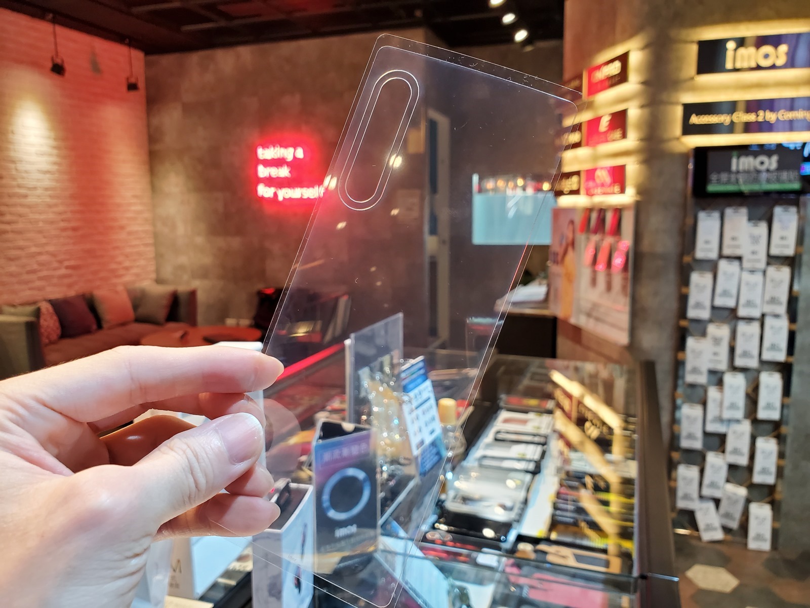 彈阿輝身為時尚界部落客,應該更簡約洗鍊一點,所以背面選擇保持高透光的 imos 3SAS 超撥水保護貼