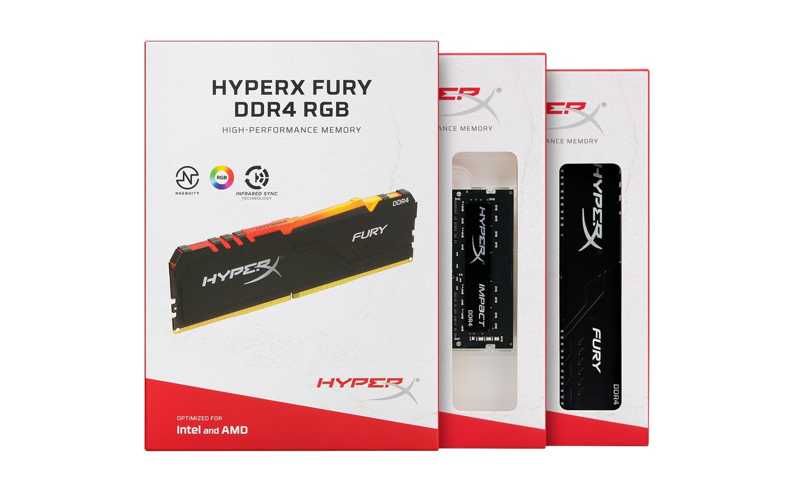 Predator 與 FURY DDR4 系列的 RGB 版本皆具備時髦的黑色散熱片設計與動態 RGB 燈效,透過 HyperX 專利紅外線同步技術,可確保燈效維持順暢同步。此外,更可使用 HyperX NGENUITY3 軟體打造專屬 RGB 燈效,展現個人風格。