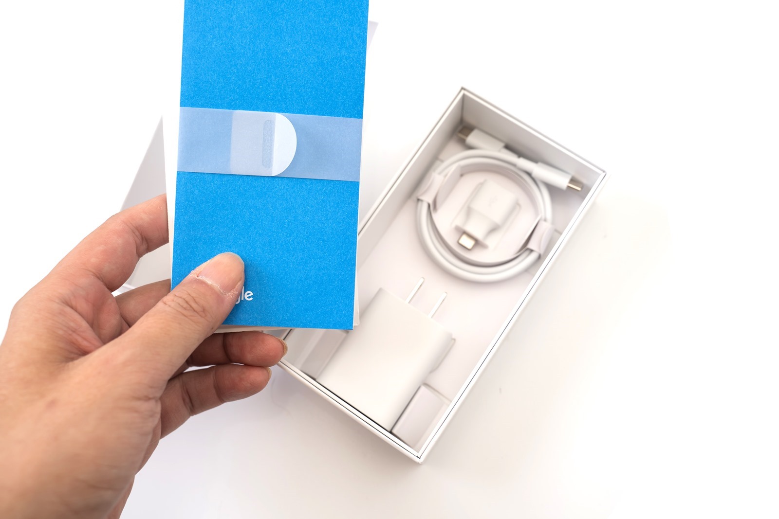 盒裝配件我們也稍微來看一下,Google Pixel 4a 盒裝中傳輸線附上 Type C <> Type C 線材,另外也直接附上 Type C OTG 轉接頭(USB A to USB Type-C),沒有附耳機