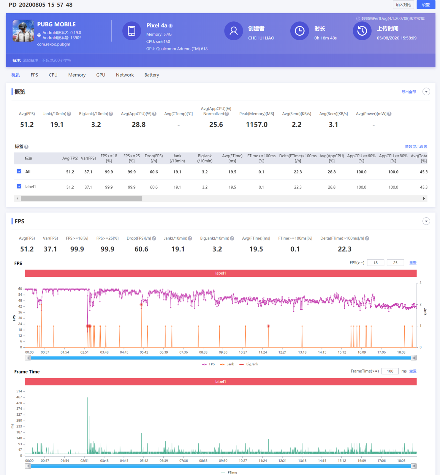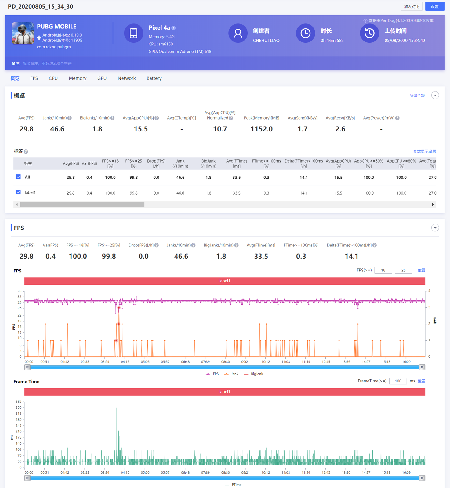 除了性能跑分測試之外,阿輝也實際安裝 PUBG 並使用效能狗來做監控實測實際遊戲運行的 fps 給大家做一個參考。 PUGB 在 Pixel 4a 預設為『高清』和『高』幀數,這樣遊戲限制的情況下滿幀數是 30fps 。
