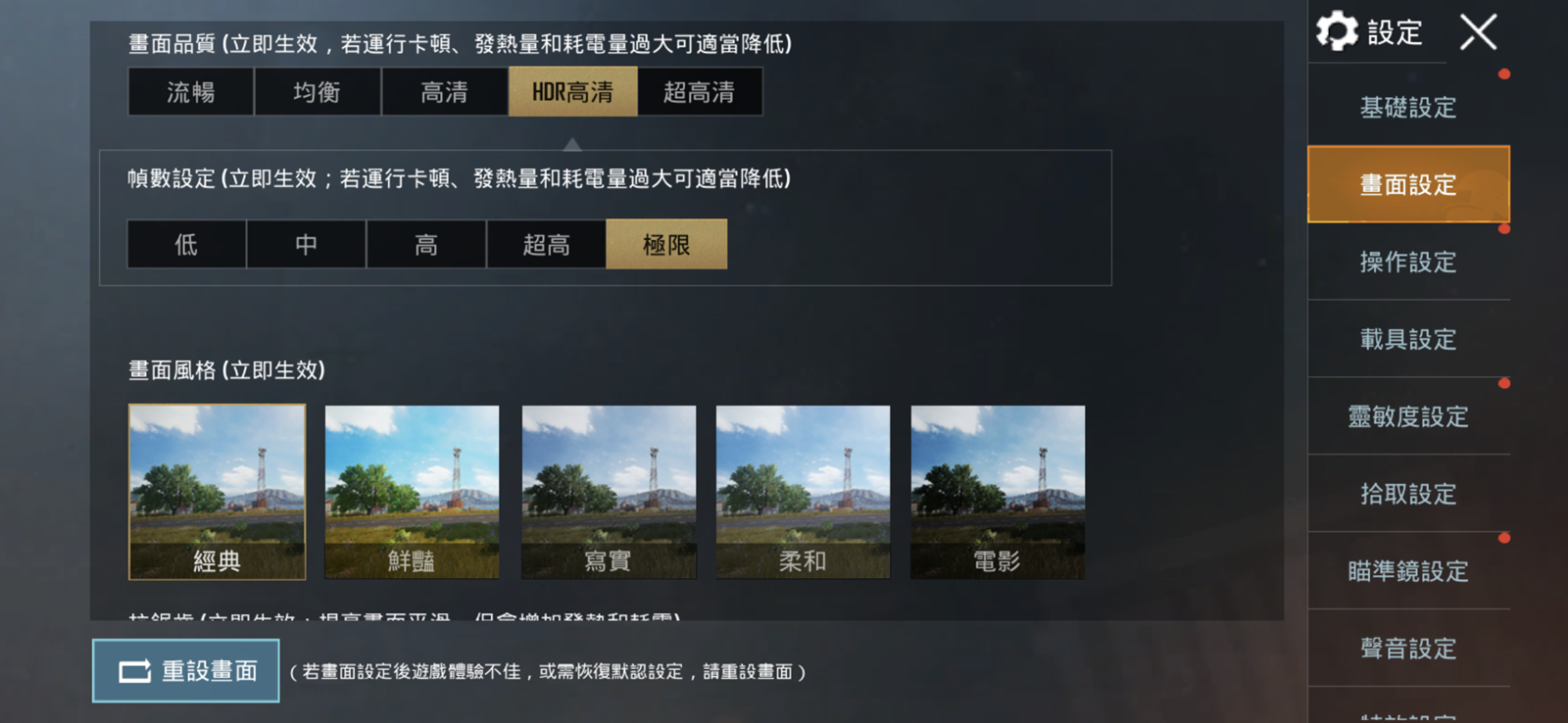 也更進一步使用 GFXTool 強迫開啟更高設定的選項,我們把設定可調整為 PUBG 目前的最高設定