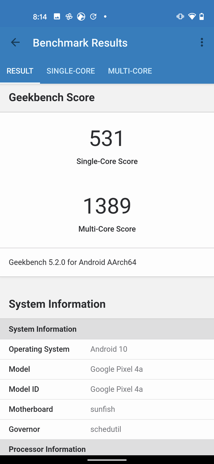 Pixel 4a 採用高通 S730 處理器與 6GB 內建記憶體的規格配置,更多資料也可以阿輝資料庫 https://reurl.cc/MxdjK ,資料庫中包含超過 300 支以上以上阿輝多年測試的實測數據,可以給大家作為對照參考使用。