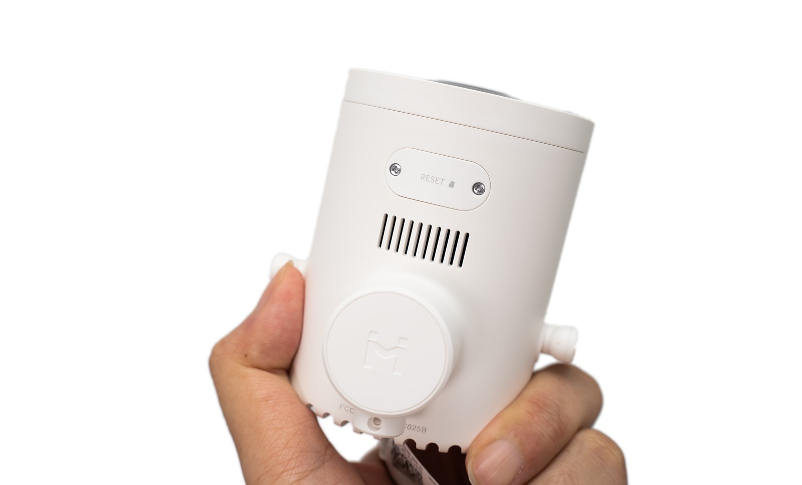 並且為了提升夜視全彩功能,鏡頭內多達了 10 顆 850nm 夜視燈珠,上方是指示燈,下方則是麥克風,是的小白具備喇叭與麥克風,除了是可以紀錄含聲音的內容之外,也可以在外直接利用小白做雙向的語音溝通。