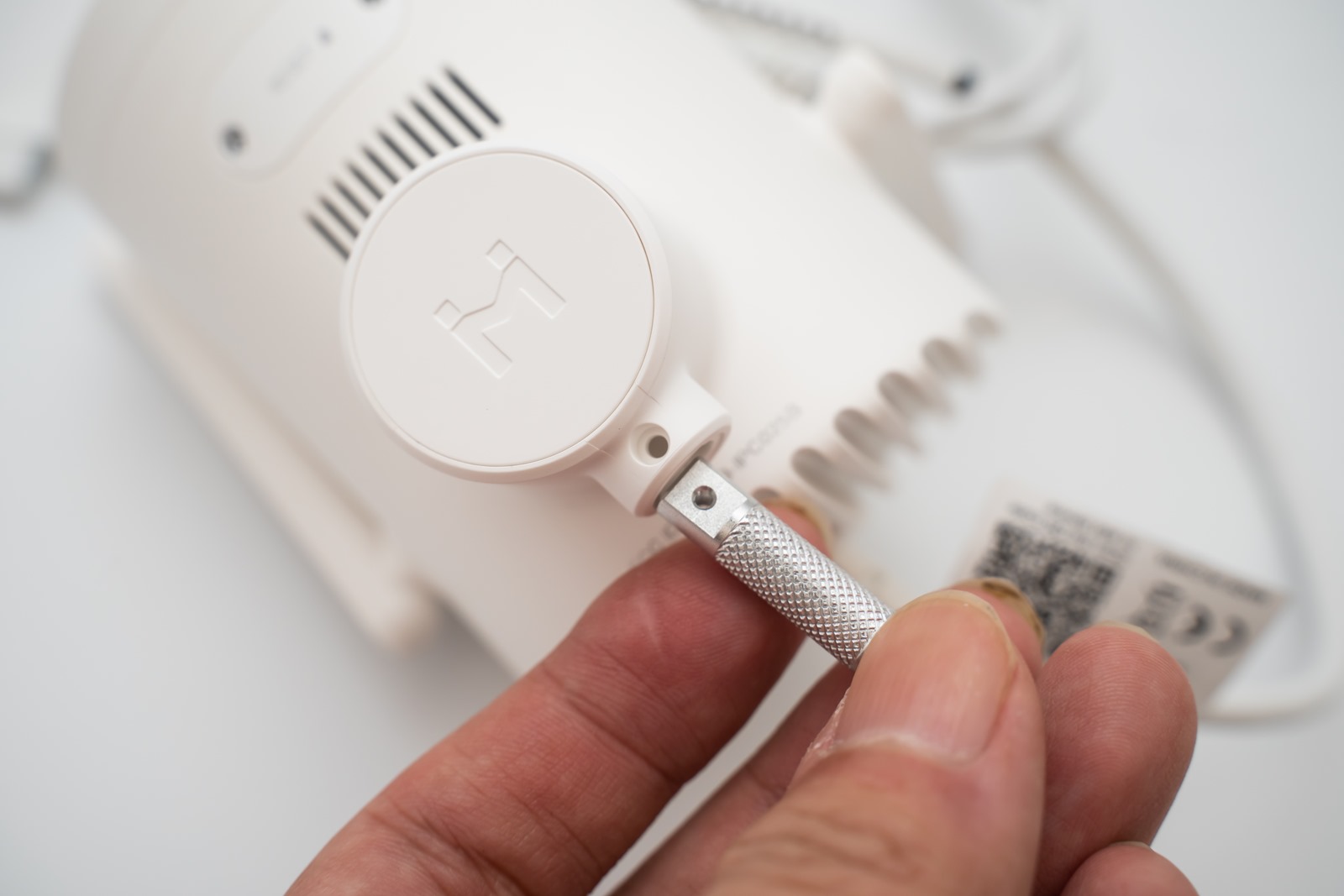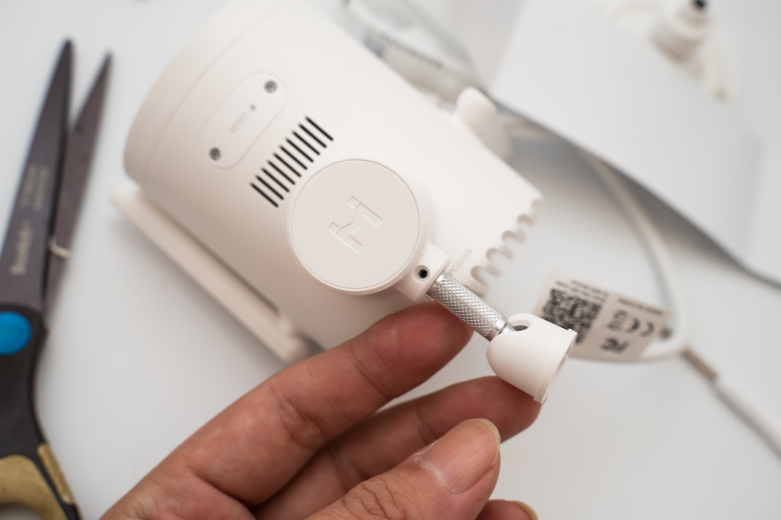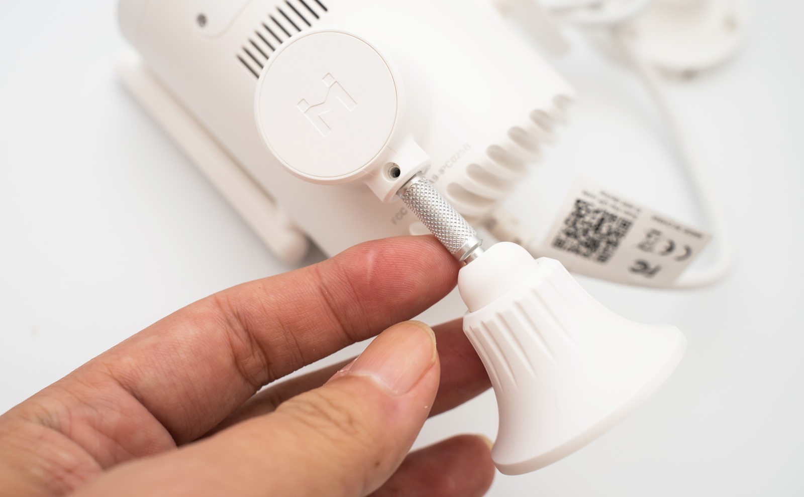 拿出雲台底座,可用鎖螺絲方式固定在戶外,如果用於室內,也能貼上易撕雙面膠固定在自己喜歡的角落,阿輝個人建議先別固定住,開機試錄看看不同的角度和地方,最後再固定住省很多時間還要拆拆裝裝的