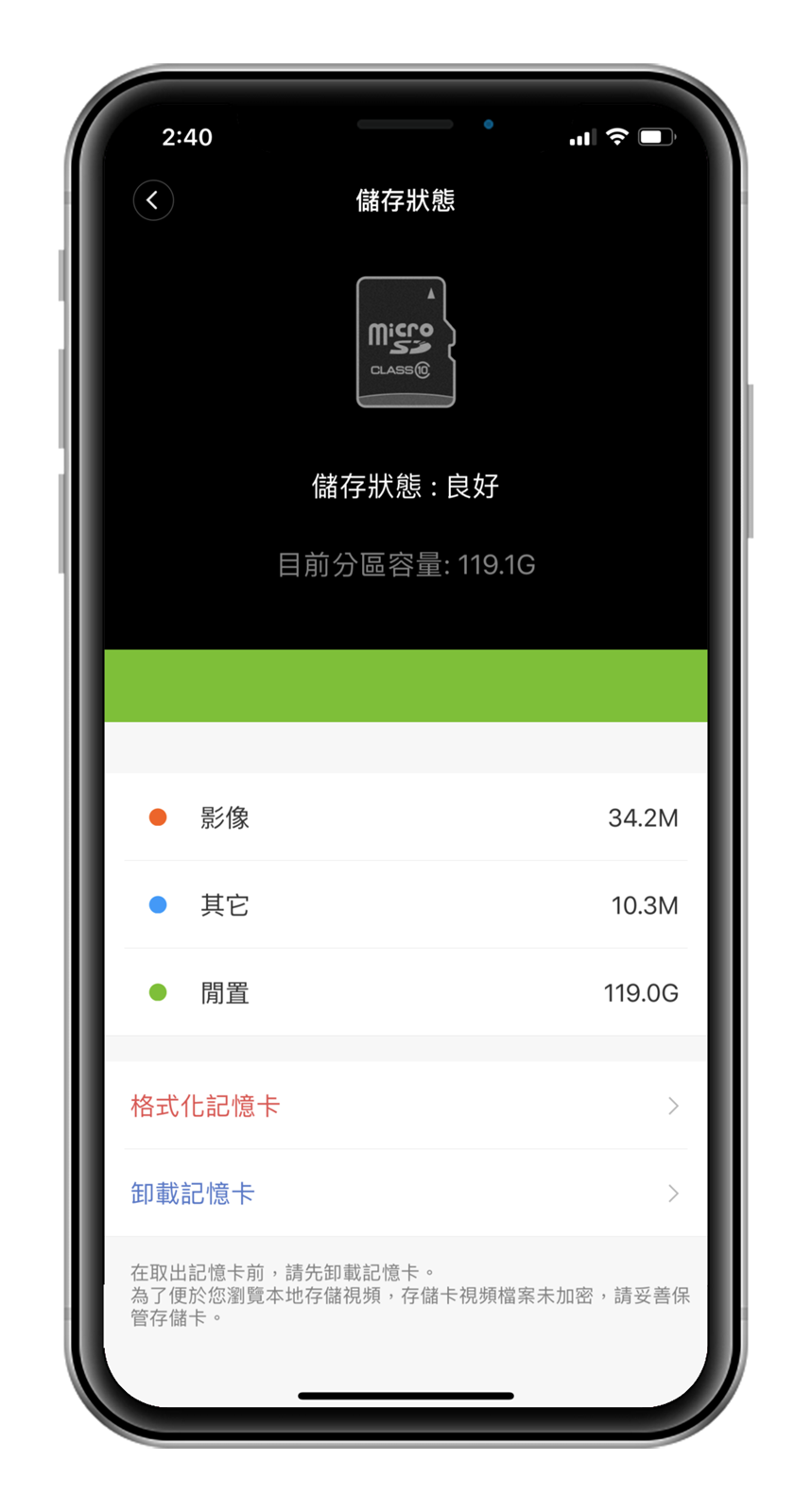 記憶卡目前狀態和 NAS 選項也都能在 APP 中看到和設定,相當容易上手