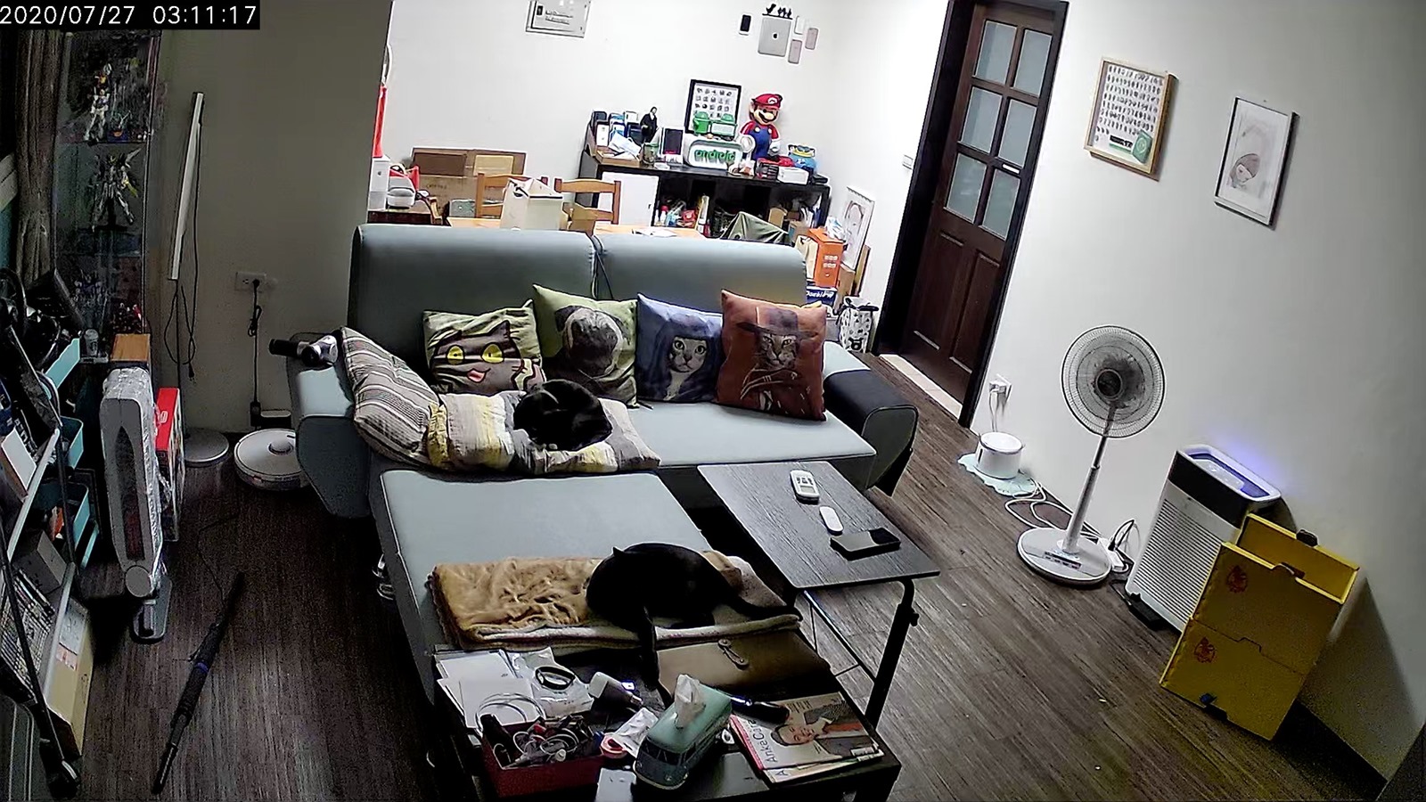 開啟自動看家模式之後,像是我家養的學弟學妹,只要一移動到客廳,小白 EC3 就會開始錄影因為有動靜,像我走過去也會偵測到有人在走動