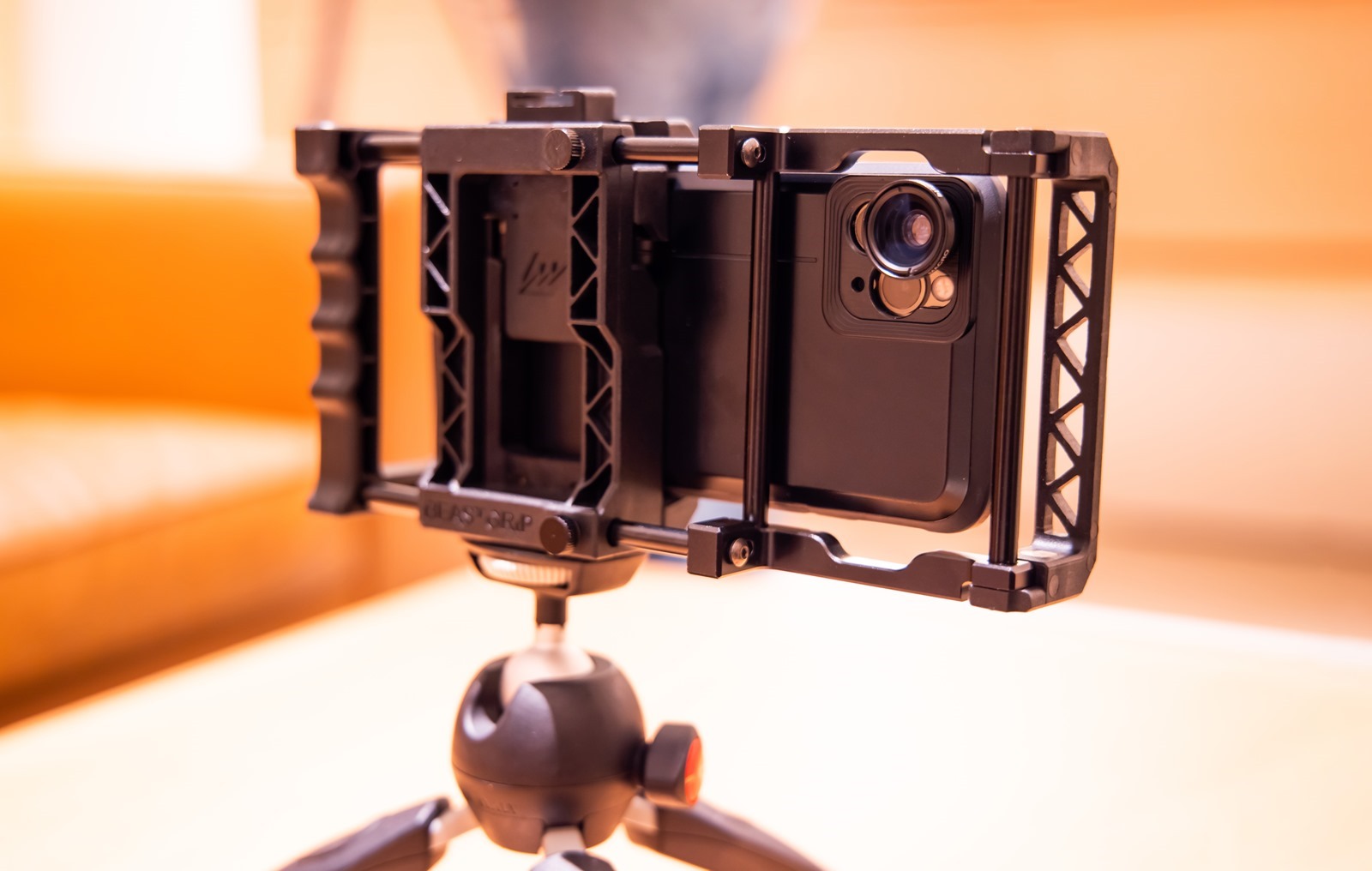 bitplay 的手機架(兔籠)與外接鏡頭,用來拍攝廣角以及特寫的望遠鏡頭。