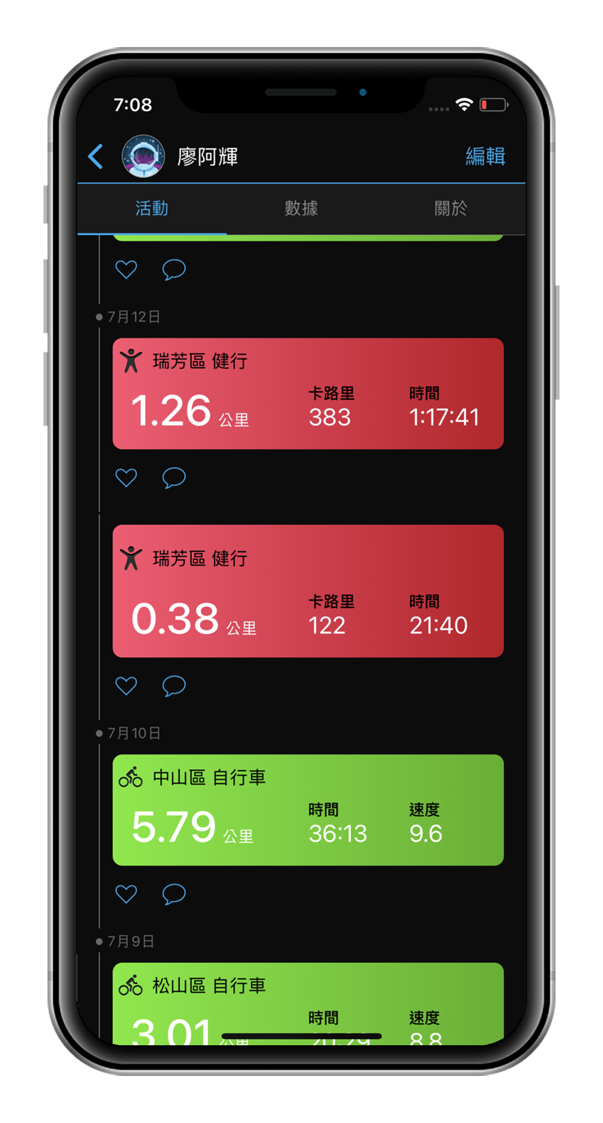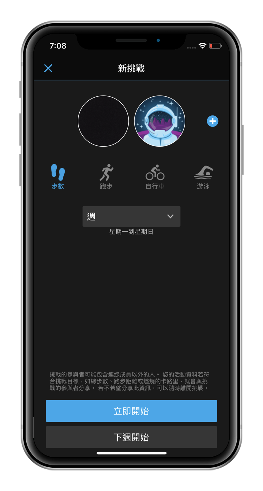 另外 APP 裡面也可以設置和好友進行部份活動的競賽,例如每週行走的步數或者是騎腳踏車的距離長度等等。