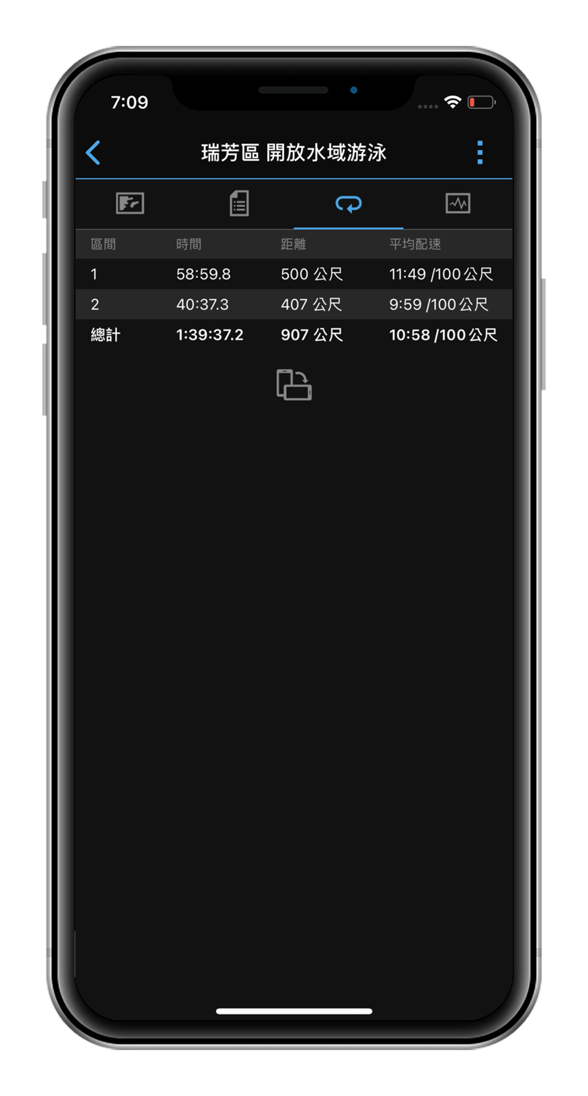 長按的話則可以從任何畫面回到時間錶面,想要再進入觀看活動紀錄現況的畫面的話則是再按一次右上角的紅色按鍵就可以。