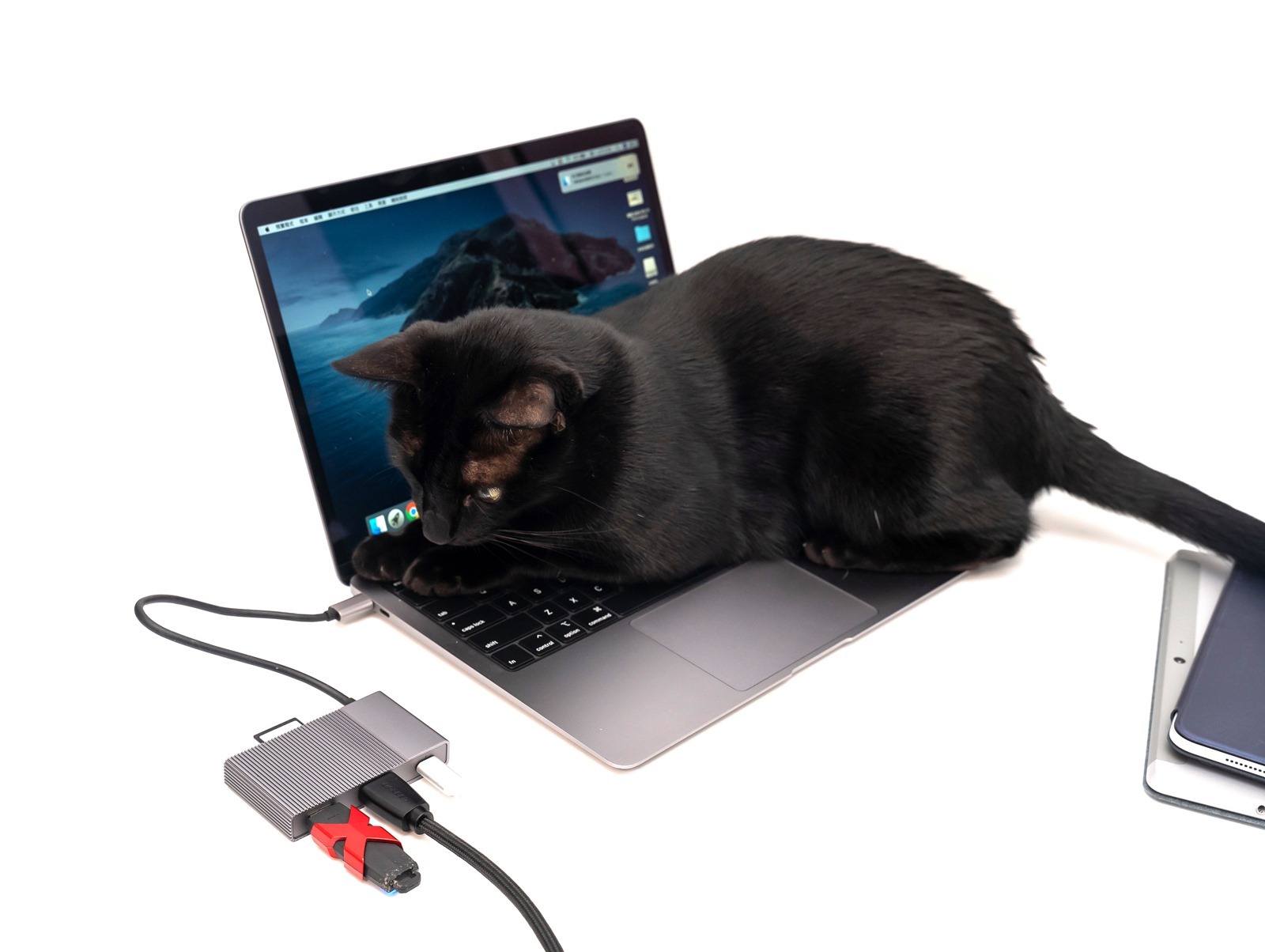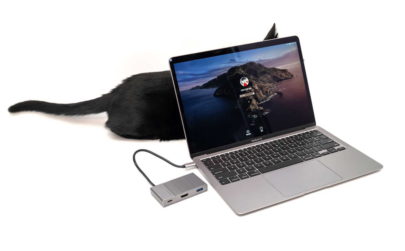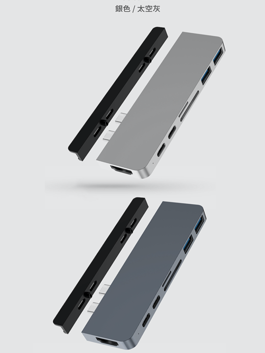 黑色的部分是二代全新設計的磁吸式檔板,可以輕鬆拆卸,針對 MacBook Air / MacBook Pro 專門設計的雙 USB-C 接頭都有特別『加長』的設計,加長的設計是針對使用硬式保護殼的朋友也能完美的接合使用,不會出現讀取不到或是使用時需要拆殼的窘況。