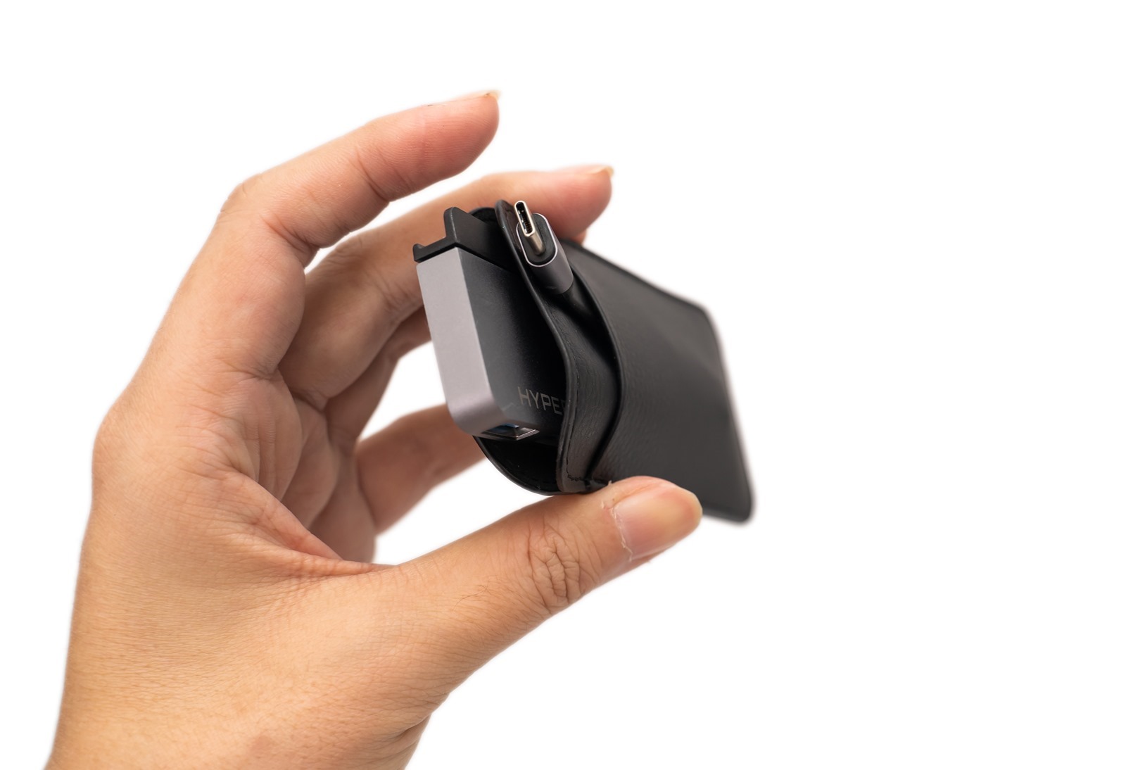 跟一代一樣,HyperDrive 7-in-2 USB-C Hub 二代也有附上附贈高質感收納皮套,扁平細緻好攜帶,而且觸手溫潤的厚實皮質濃濃的沉穩氣氛大大抵消了原先 Hub 金屬質感帶來的冰冷距離。