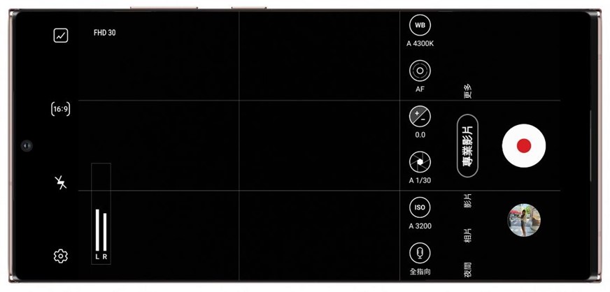 拍照一樣優異,而 Galaxy Note20 Ultra 5G 的錄影功能更是大大的進步一定要和大家介紹!這一次 Galaxy Note20 Ultra 5G 在內建相機程式中新增了專業錄影模式(可以在相機模式的更多中找到並新增到常用模式中),除了過去就有的 8K 影片錄製、 4K60 影片、慢動作超級慢動作等功能都持續提供外,專業錄影模式提供了更多手動與整選項,不論變焦對焦白平衡或是快門時間,都可以讓拍攝者自行調整甚至控制速度,讓拍攝者完全解放可以依照自己的想法拍出專業影片。