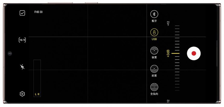專業錄影功能中阿輝最喜歡也覺得最重要的就是可以決定收音麥克風的選項了!超重要!現在 Note 20 Ultra 5G 專業錄影模式可以活用機身的三麥克風,讓錄製可以選擇全方向收音 / 前方收音 / 後方收音,而若是接上 USB 麥克風或是連結藍牙耳機,也可以選擇要作為收音的裝置。