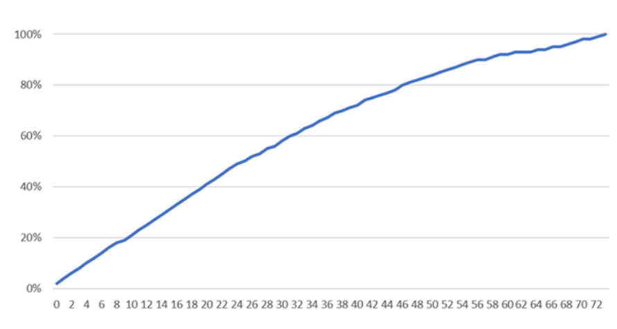 - 手機完整充電到 100% 滿電停止,總共花 73 分鐘時間
