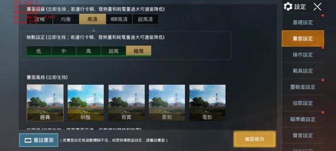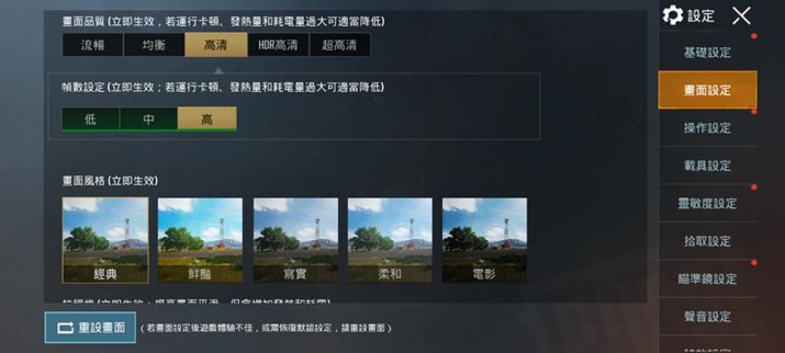 說到遊戲絕對少不了熱門的吃雞遊戲,不過遊戲設定預設只能限制選擇『高清』+『高』偵數設定,這樣的話其實遊戲的最高上限會被固定在 30 FPS