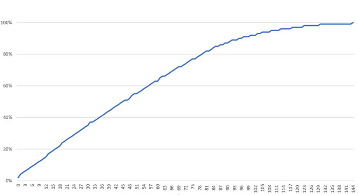 - 手機完整充電到 100% 滿電停止,總共花 144 分鐘時間