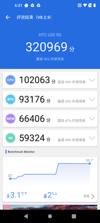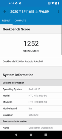 HTC U20 5G 採用高通 765G 處理器與 8GB 內建記憶體的規格配置,更多資料也可以阿輝資料庫 https://reurl.cc/MxdjK ,資料庫中包含超過 350 支以上以上阿輝多年測試的實測數據,可以給大家作為對照參考使用。