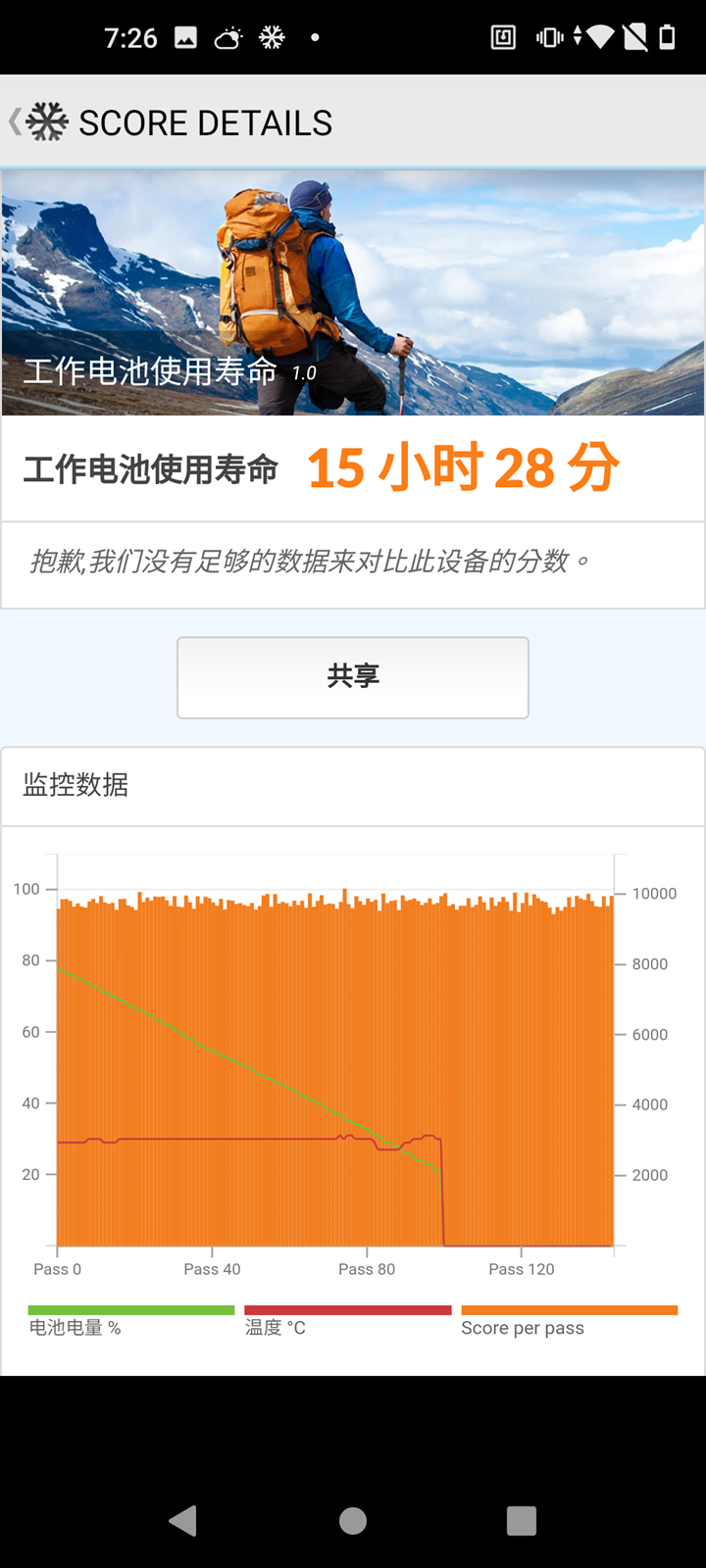 電力方面阿輝實際測試 HTC U20 5G 內建電池容量為 5000 mAh,實測電力部分以 PCMARK 做標準測試,測試 80% ~ 20% 間的電力運行,模擬上網、工作、遊戲的混合應用,測試結果為 15 小時 28 分鐘可以說是有非常優異的續航表現;測試方式與標準可以參考這篇說明。