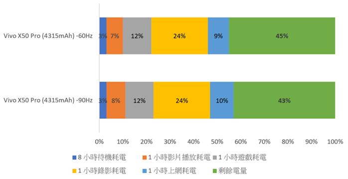 - X50 Pro 瀏覽器連續讀取瀏覽 1 小時,實際消耗 9% 電量,剩餘 45% 電量
