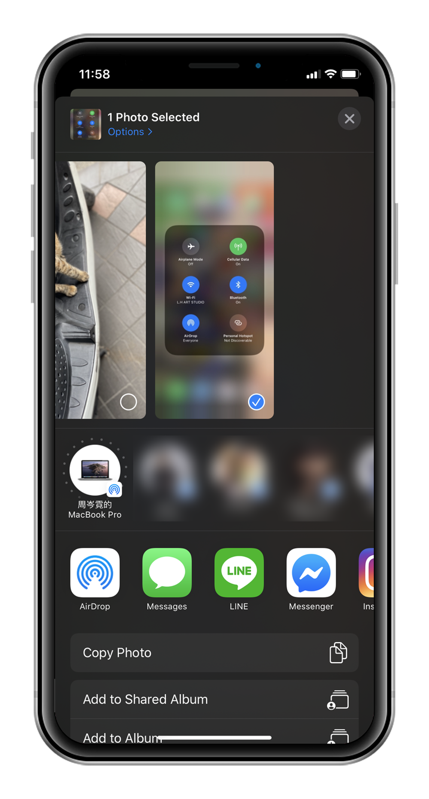 第一個要介紹的就是 AirDrop 功能,方便到爆真的不是開玩笑,現在朋友一群人出門基本上照片都是用 AirDrop 傳來傳去,不只是速度快、更重要還是簡單使用輕鬆不需要學習就可以輕鬆達成,在朋友圈中方便程度已經可以說是對不使用 iPhone 的人的一種霸凌(苦笑), 只要都是用 iPhone 不管幾個人都可以一次傳好傳滿,如果是聯絡人名單中的朋友還會有頭像更方便確認。