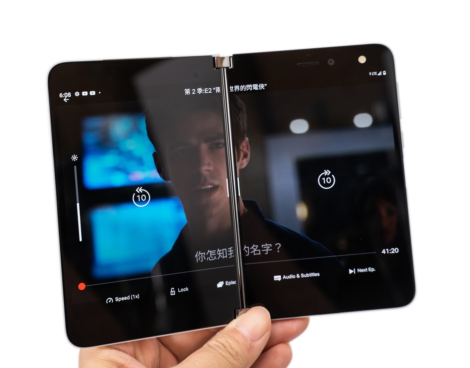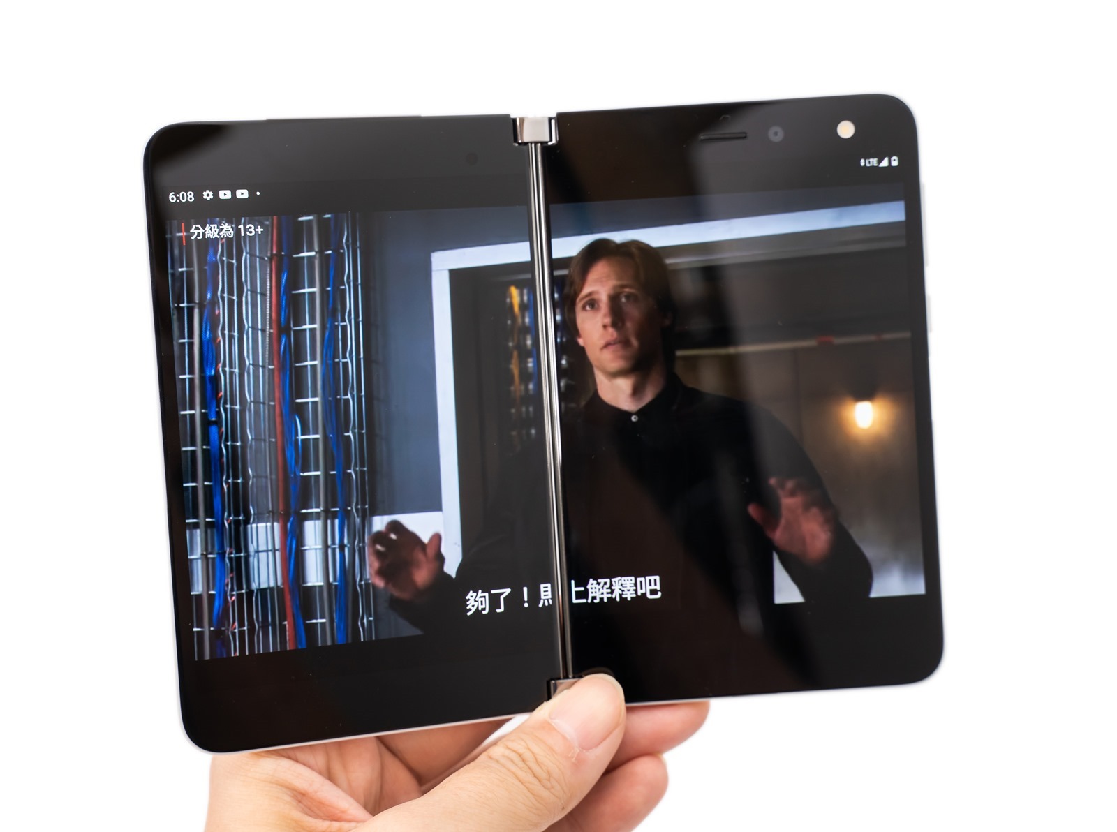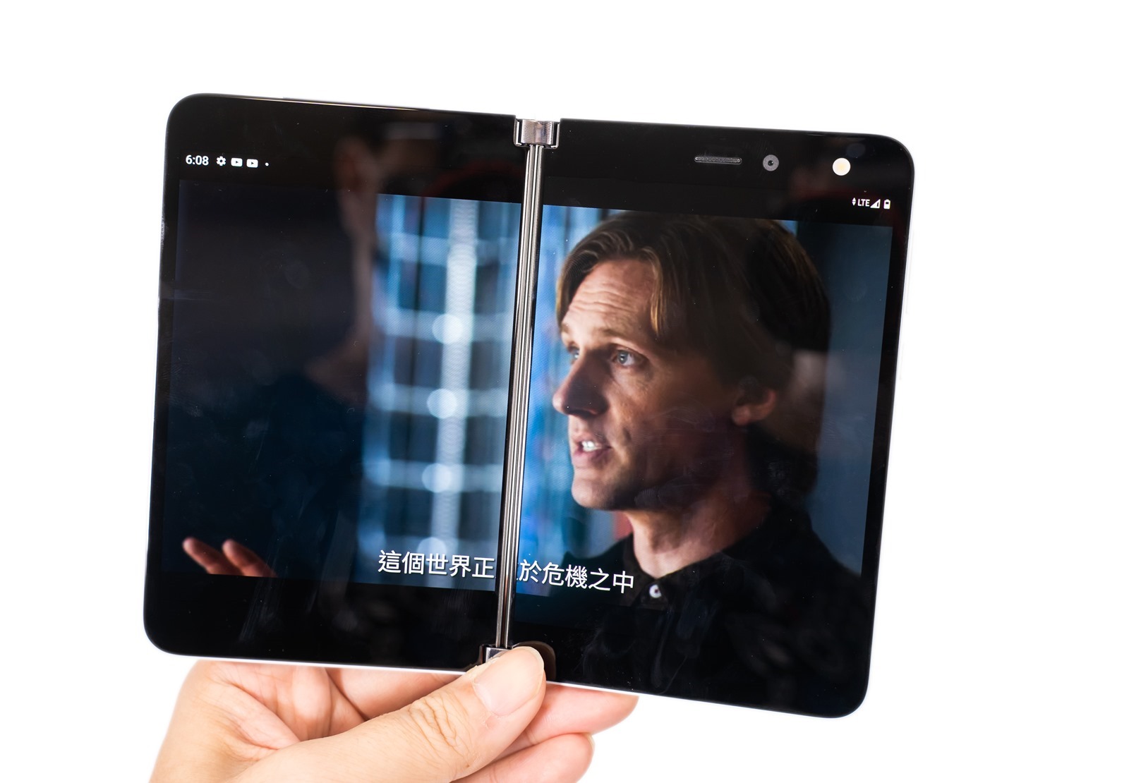 不過也要稍微注意 Surface Duo 似乎為了視覺的協調,在橫跨螢幕的顯示模式中,中間轉軸部份是會吃掉解析度的,因此畫面像是字幕等等會有部份會被『吃掉』的問題,不過猜測應該有選項可以設定調整吧,只是真的把玩時間太少並沒有研究選項在哪裡
