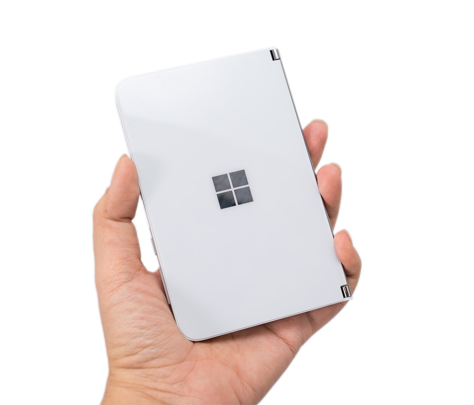 Surface Duo 攤開時厚度僅 4.9mm,合併在一起的時候則是 9.9mm 厚度,其實實際拿在手上並不覺得厚重,攤開時甚至可以說是阿輝拿過最薄的手持行動裝置之一。