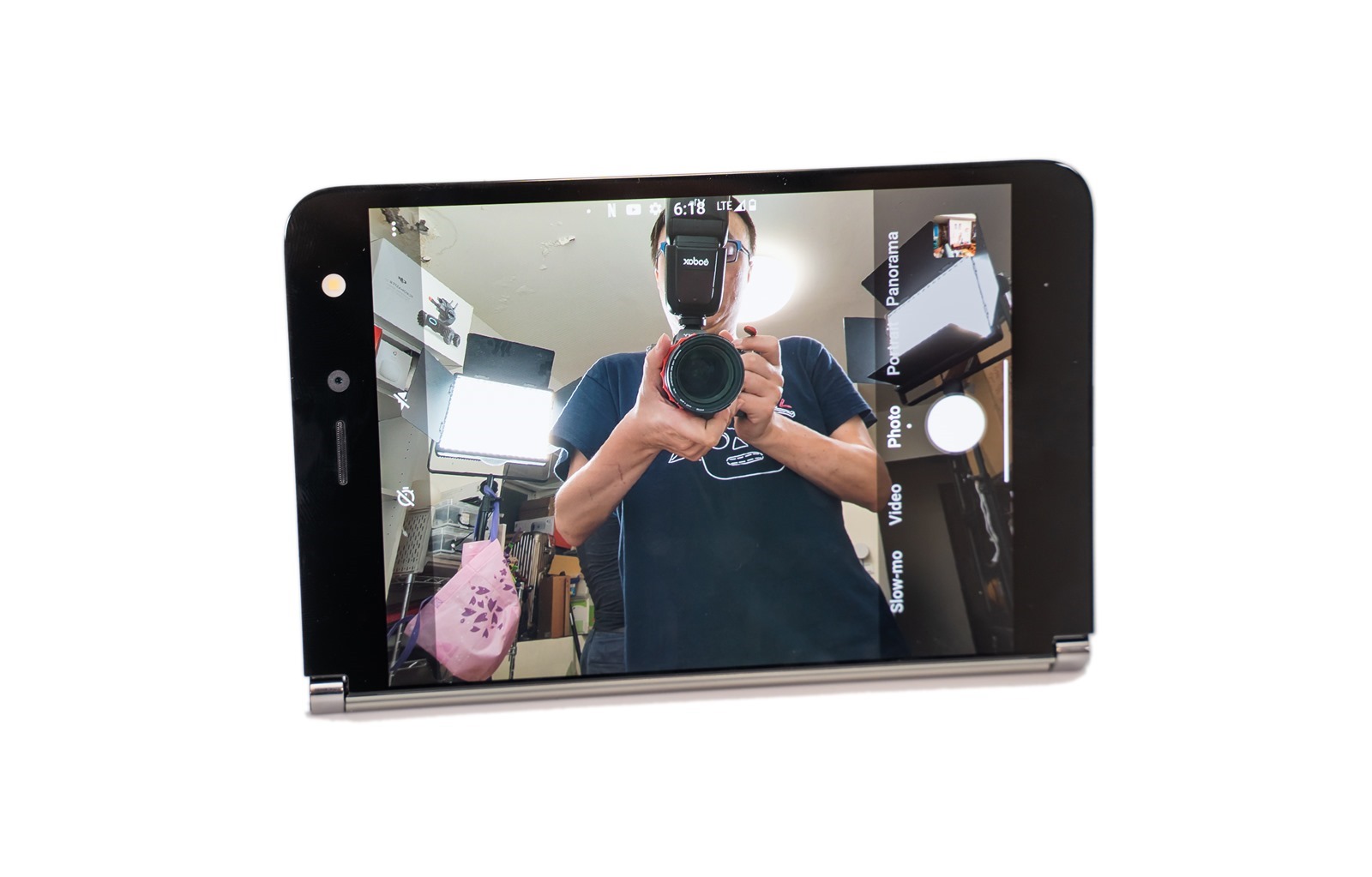 不過也要趁機說一下大概真的因為追求太薄的緣故 (?),Surface Duo 整機只有『一顆』規格為 1100 萬像素 f/2.0 光圈,等效 23mm 廣角、像素尺寸 1.0µm 的鏡頭,貨扯你可以說 Surface Duo 是一台稀奇到只有自拍鏡頭設計的裝置,甚至這一顆唯一的鏡頭也並不算好,還好錄影依然支援到 4K60P 還算可以,不過畫質的話完全可以不用期待,就是不折不扣一顆可以用來自拍、可以用來視訊,然後其他都不用談的相機。啊你應該也會發現 Surface Duo 的自拍鏡頭旁邊有補光燈,嗯對… 它其實也蠻顯眼的