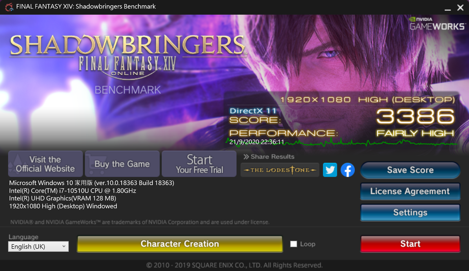 透過太空戰士(最終幻想)Final Fantasy XIV 的跑分軟體,以 1080P 解析度來進行測試,獲得分數為 3386 分已經達到 FAIRLY HIGH『相當高』的評價,和內建顯卡的低分簡直是天壤之別!
