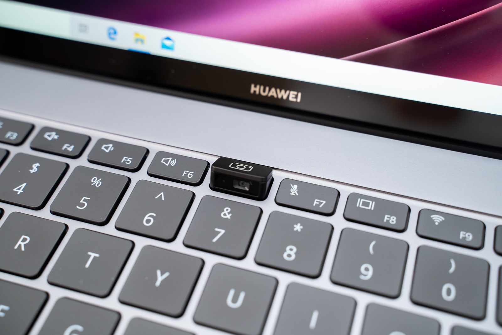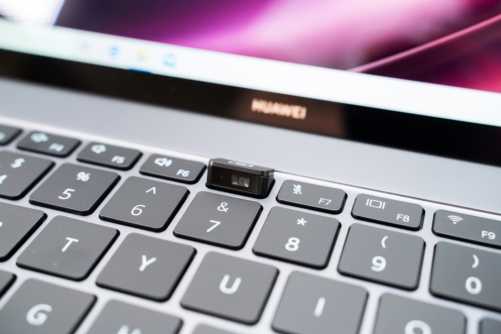 HUAWEI MateBook X Pro 在追求更大的螢幕佔比的同時,提出讓過去一定得佔用到螢幕邊框寶貴空間的 Webcam 移動到了『鍵盤中』,華為透過特別訂製小型化的 100 萬像素 WebCam 視訊鏡頭,埋藏到了 F6 與 F7 之間的位置,並且還是機械式按壓可以隱藏的設計!