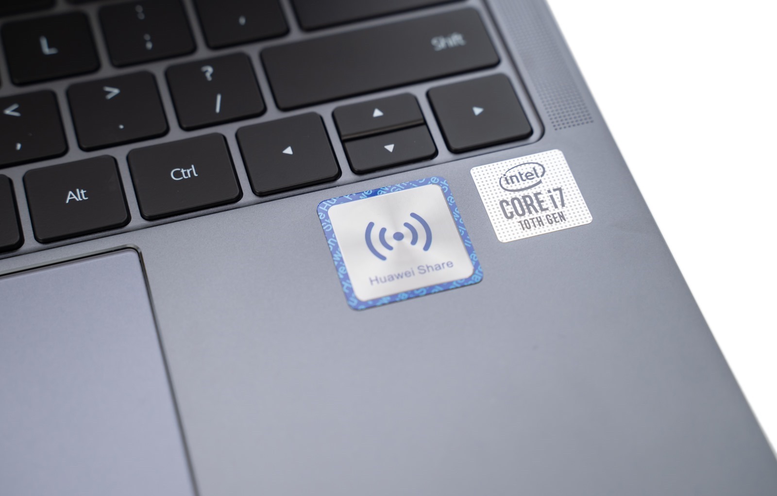 HUAWEI 筆電阿輝最喜歡的『一碰傳』功能這次也在 HUAWEI MateBook X Pro 上出現啦!就是右下角這個 Huawei Share 的貼紙!簡單來說這是一個利用 NFC 感應技術 + 藍牙 + Wifi 整合的超好用功能,只要手機一『碰』上去,相片影片就瞬間傳輸完成!