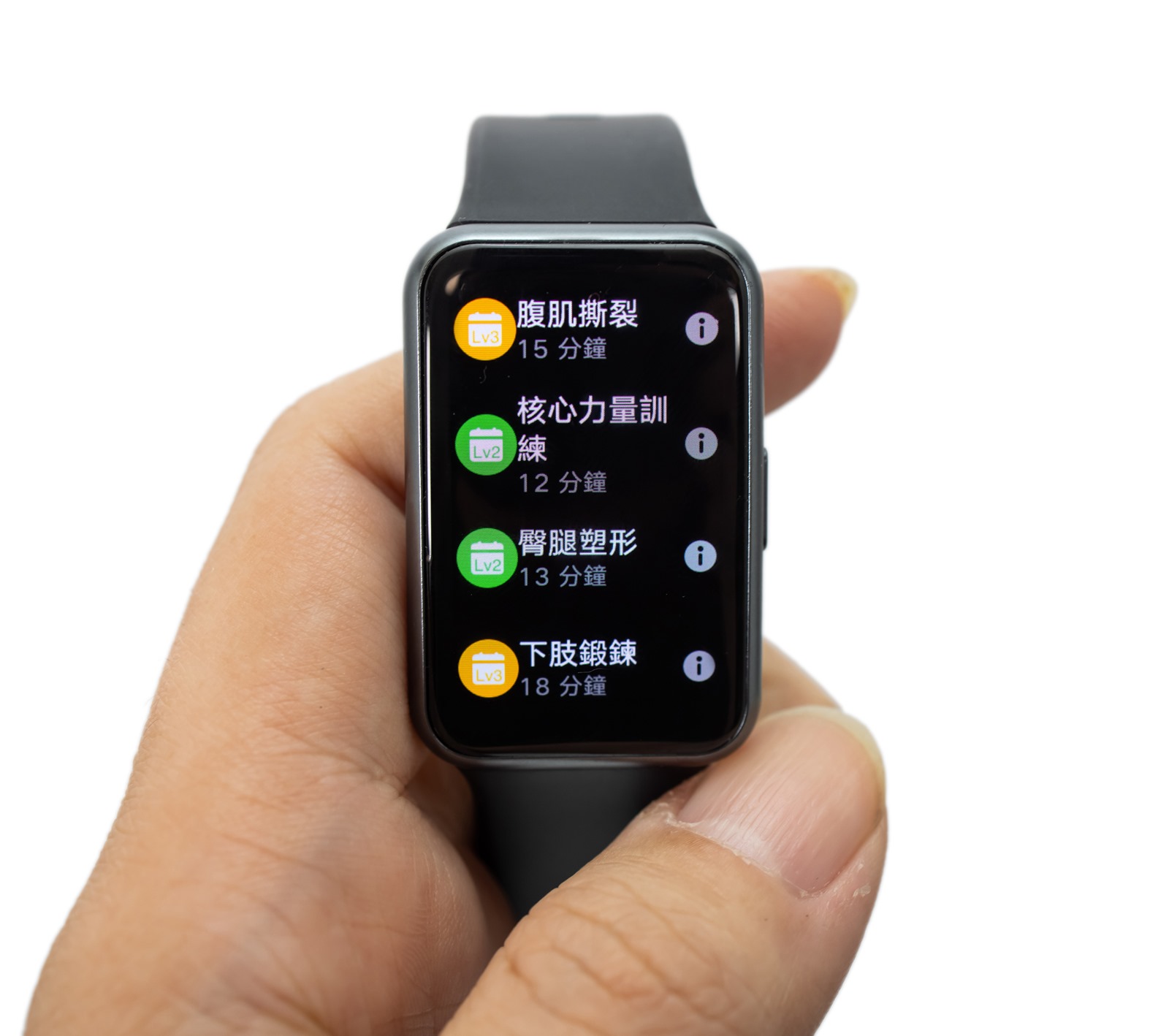 除了有氧運動之外,也有針對核心肌群設定的模式;阿輝許多女性好友對於有氧運動比較缺乏興趣,但卻喜歡鍛鍊腹肌或是馬甲線,就能使用 HUAWEI WATCH FIT 這幾款胸肌或是小腹特別設計的模式來雕塑身形、控制體態。看到腹肌撕裂模式,忍不住覺得肚子有點痛痛的…