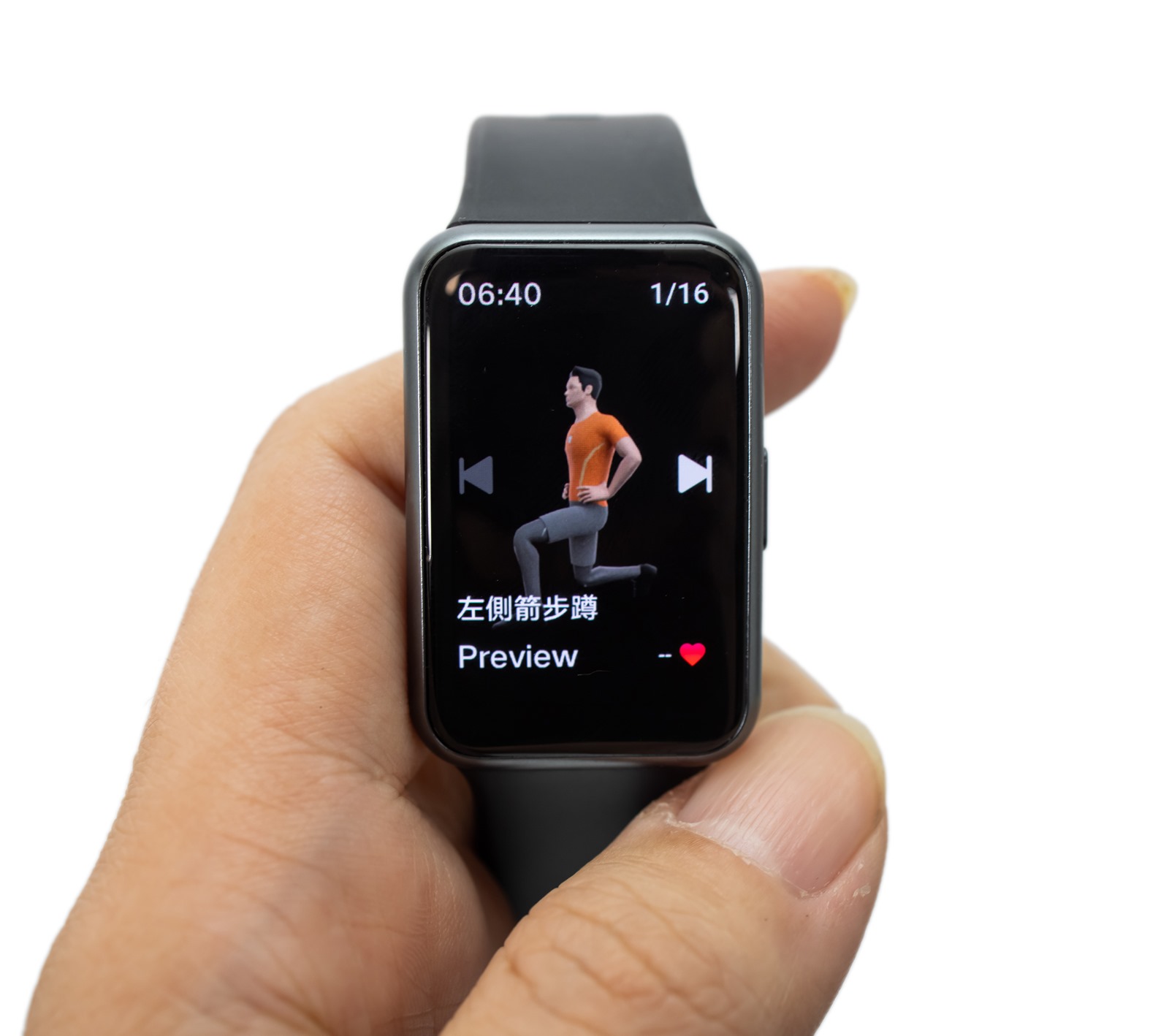 例如各種肌力運動,例如箭步蹲,基本上就隨著手錶的提醒音,組數與時間手錶都會自己控制,手手錶上也會出現運動方式的圖片,當然熟悉之後只要照著提示音就可以簡單的一組一組進行!