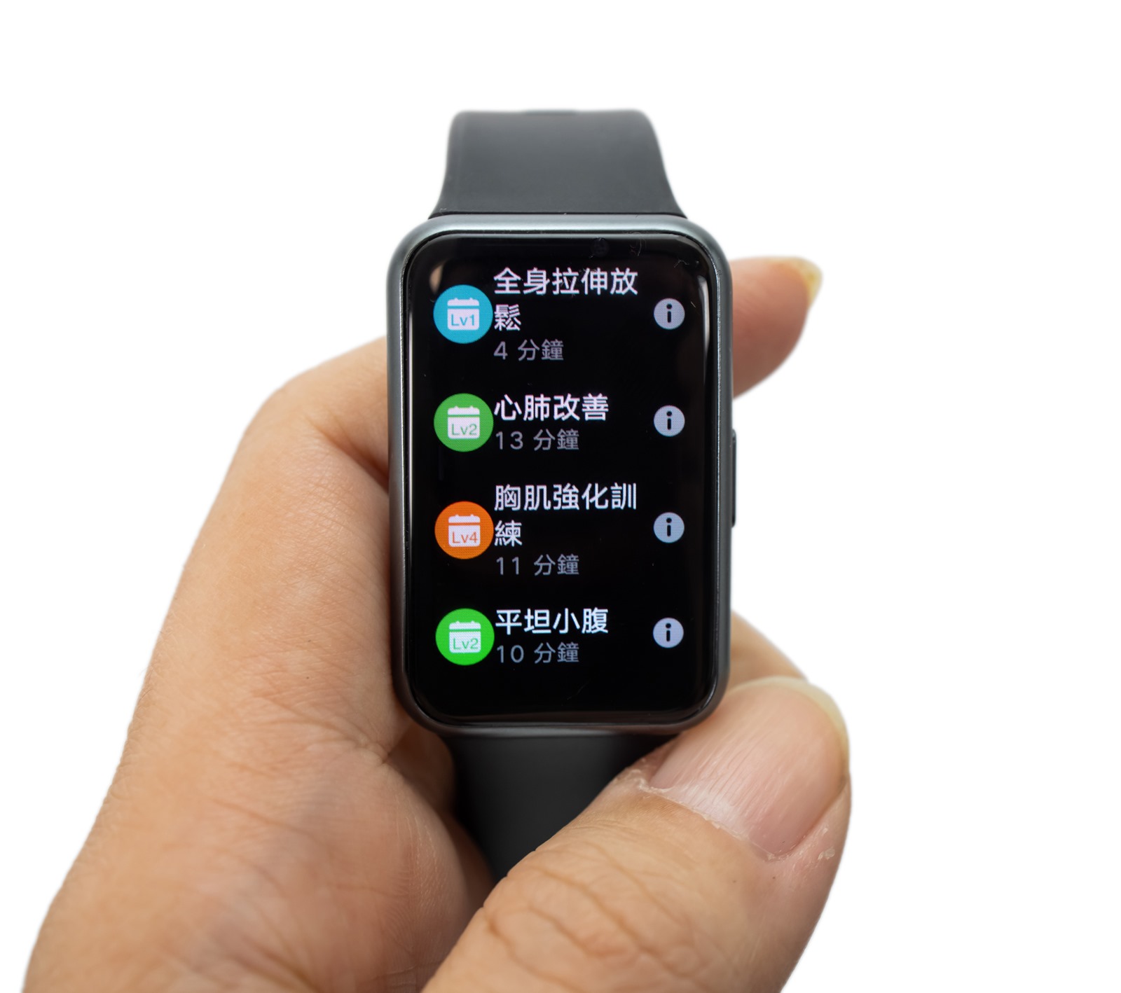 健身課程通常都是 10 多分鐘的快速簡單課程,只要開啟 HUAWEI WATCH FIT 的健身課程,就像是隨時隨地都可以是個人健身房!