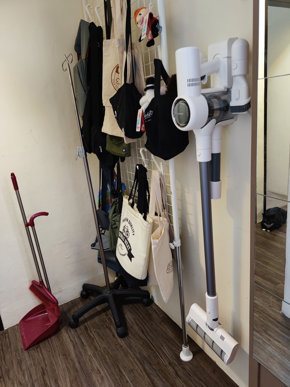 可以整合充電的壁掛架,可以方便地安裝在家中任何位置,同時也可以收納其他吸頭配件。