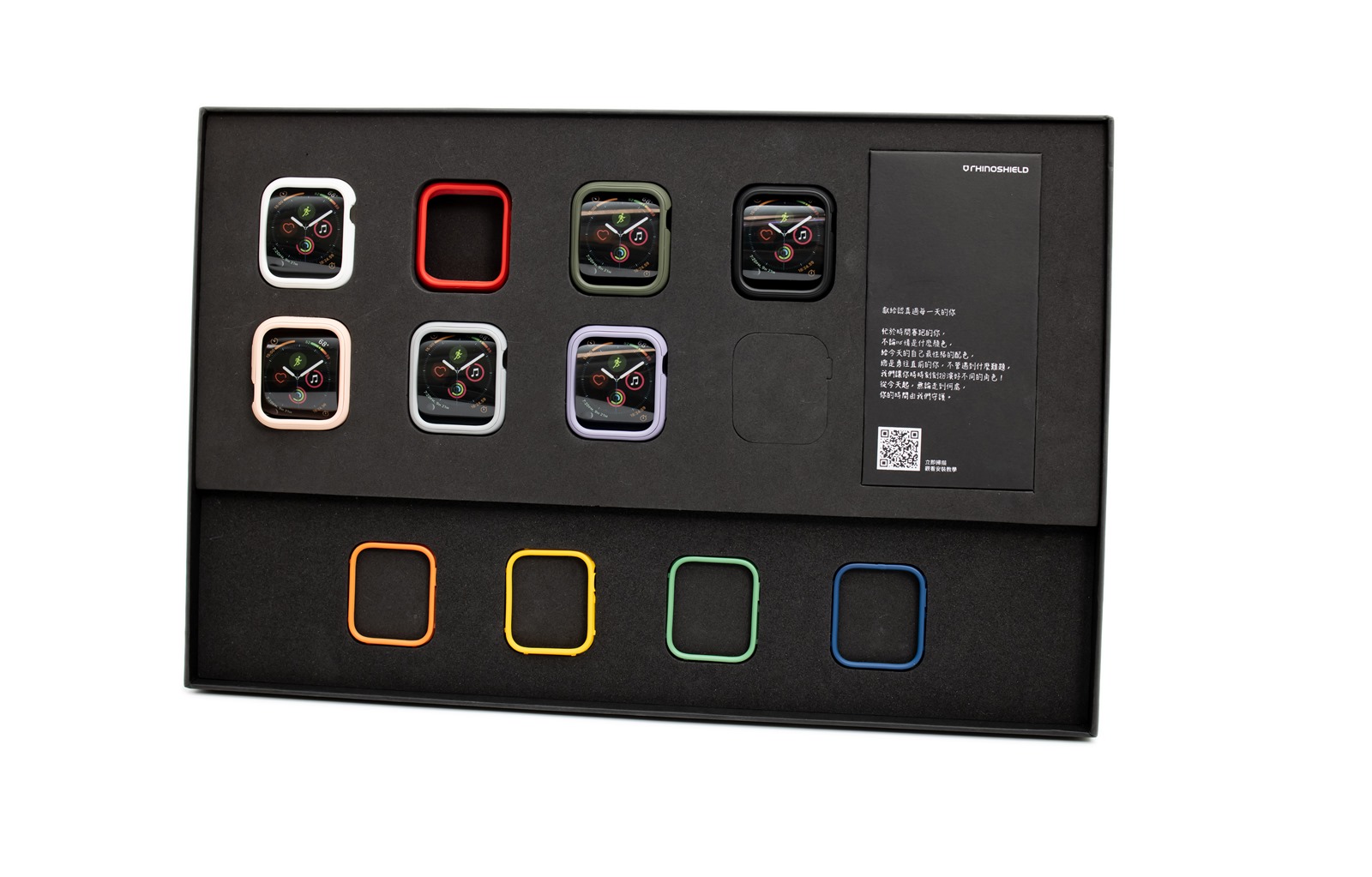 特別要說一下犀牛盾在全球的售價就是台灣最便宜,犀牛盾 Apple Watch CrashGuard 一組售價為 NT$400,並且基本組合已包含一組外框及飾條 (同色),並且額外附贈飾條可以選擇不同顏色來搭配