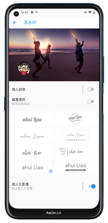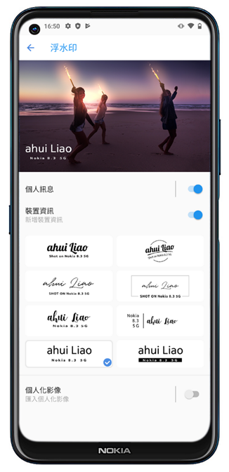 想要獨特的浮水印功能嗎?Nokia 8.3 5G 也提供增加浮水印並且可以個人化設定的功能