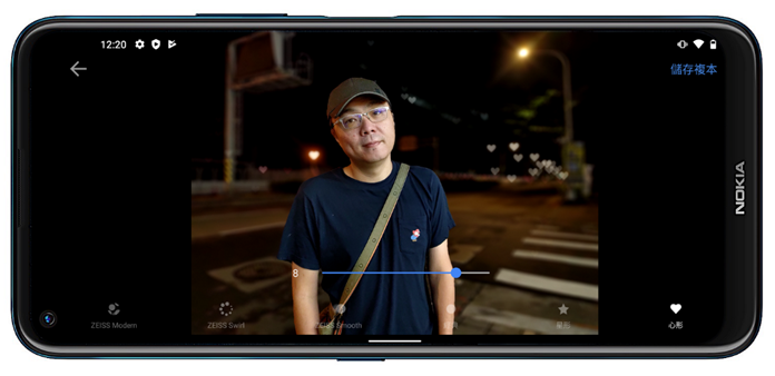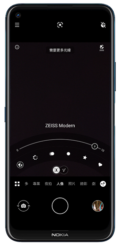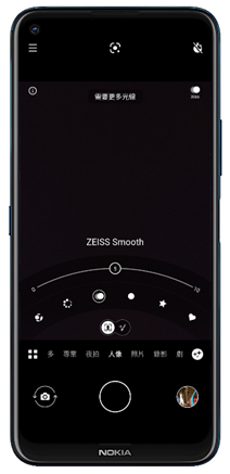 Nokia 8.3 5G 在人像散景模式中提供了 ZEISS Modern 、 ZEISS Swirl 、 ZEISS Smooth 、經典、星形、心型等六種模式,並且可以調整效果強度提供獨特的散景效果。
