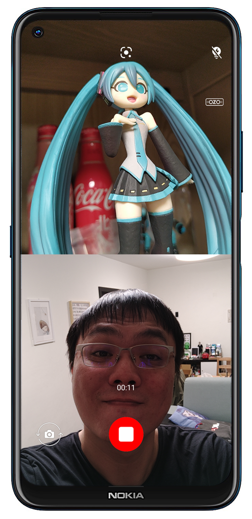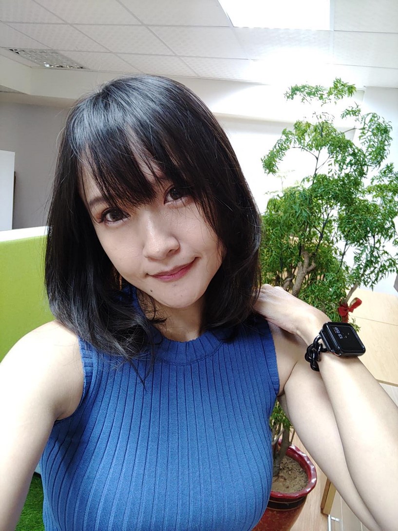自拍方面 Nokia 8.3 5G 採用 2400 萬像素、 f/2.0 光圈的前鏡頭,並且有提供基於 AI 技術的景深效果與美肌效果,這裡也請合作妹子自拍給大家參考嘍!