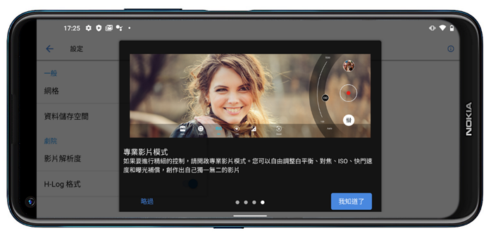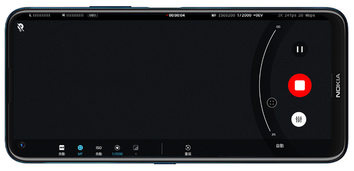 Nokia 8.3 5G 劇院錄影功能中也提供了專業模式,可以調整包含了白平衡 / 自動或是手動對焦 / ISO 感光度/快門速度 / 曝光補償等功能