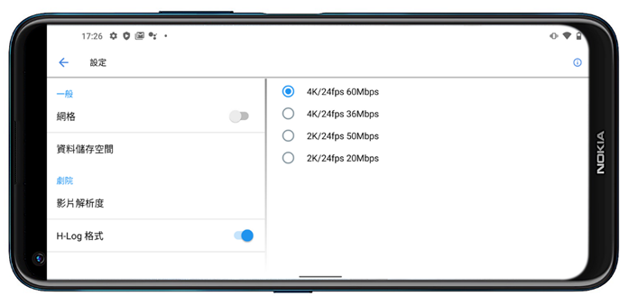劇院模式中拍攝影片則會是固定在 24P 的張數,同時也可以選擇紀錄 60Mbps 或是 36Mbps 的影像流量,這也是沒有在其他手機上見到的內建功能。