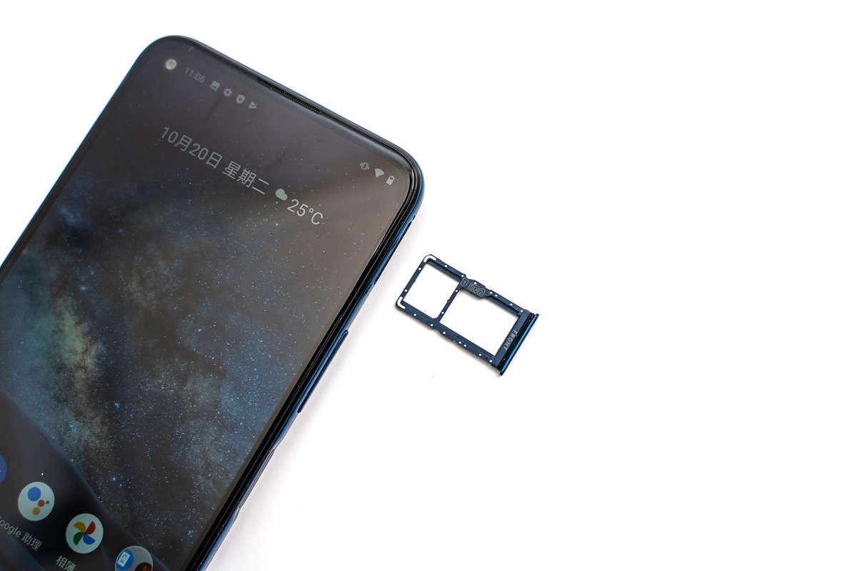 位於機身右上角的 SIM 卡插槽採用三選二卡槽的設計,SIM2 與 MicroSD 記憶卡共用,網路部份 4G 支援台灣全頻段, 5G 頻段部份支援從 600hmz 到 3.8GHz 共 13 個 5G 全頻段 (n1 / n2 / n3 / n5 / n7 / n8 / n28 / n38 / n40 / n41 / n66 / n71 / n78) 並且對應 SA/NSA 組網模式。