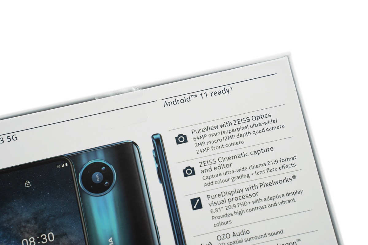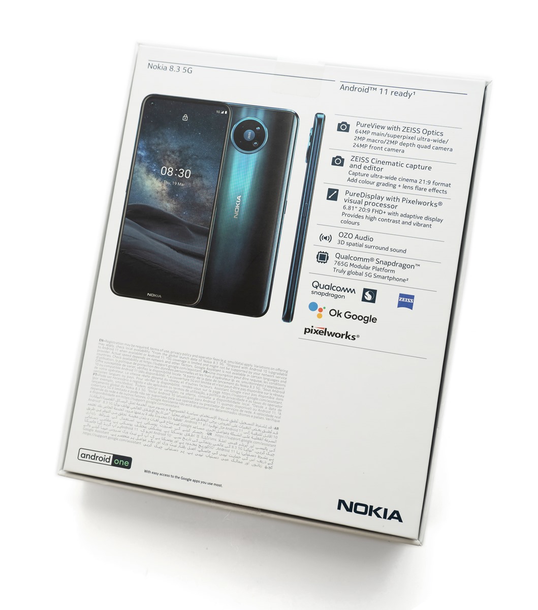 來開箱這 Nokia 首台 5G 手機吧!外盒上第一眼就會看到強調保證至少 2 年的 Android 系統的升級承諾(還有 3 年的每月安全性更新),採用原生 Android 系統可以讓 Nokia 8.3 5G 擁有非常快的系統與安全更新、流暢的速度體驗。