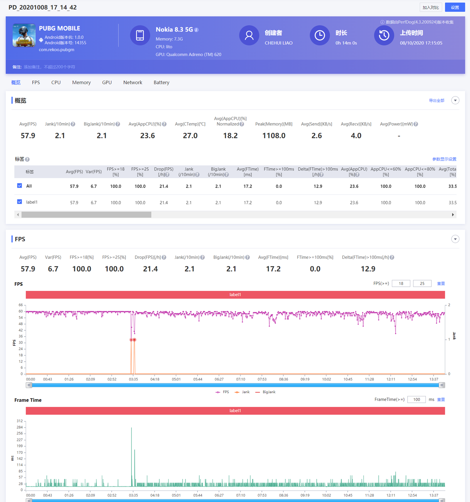 結果看來也沒任何問題啊!穩定全程都接近滿張數,平均張數 57.9 FPS