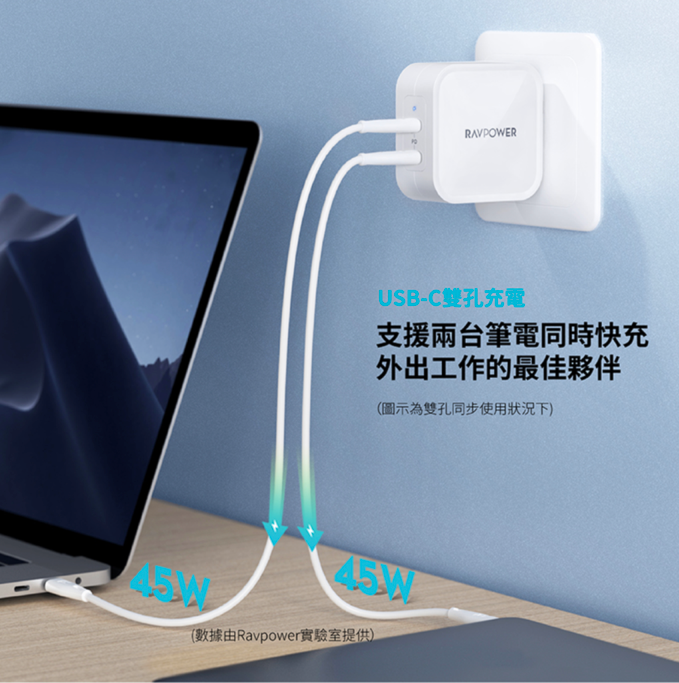 支援兩台筆電同時快充!更小巧、更快速、更穩定的 RAVPower 90W/65W 氮化鎵 GaN 充電器!