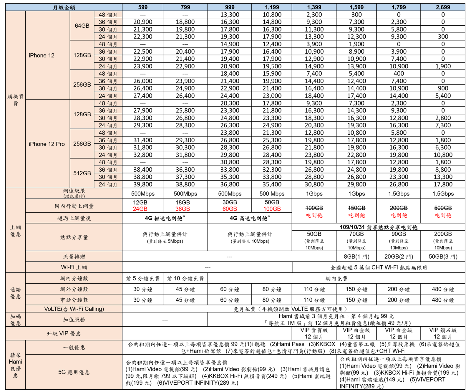 中華電信公布 iPhone 12 、 iPhone 12 Pro 5G 購機資費
