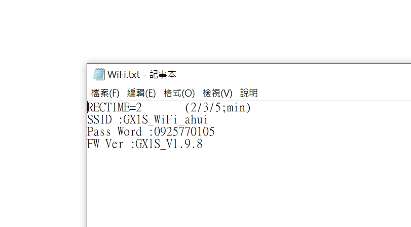資料夾中的 Wifi.txt 文字檔可以很簡單設定 GX1S 的設定甚至是 Wifi 名稱與密碼。
