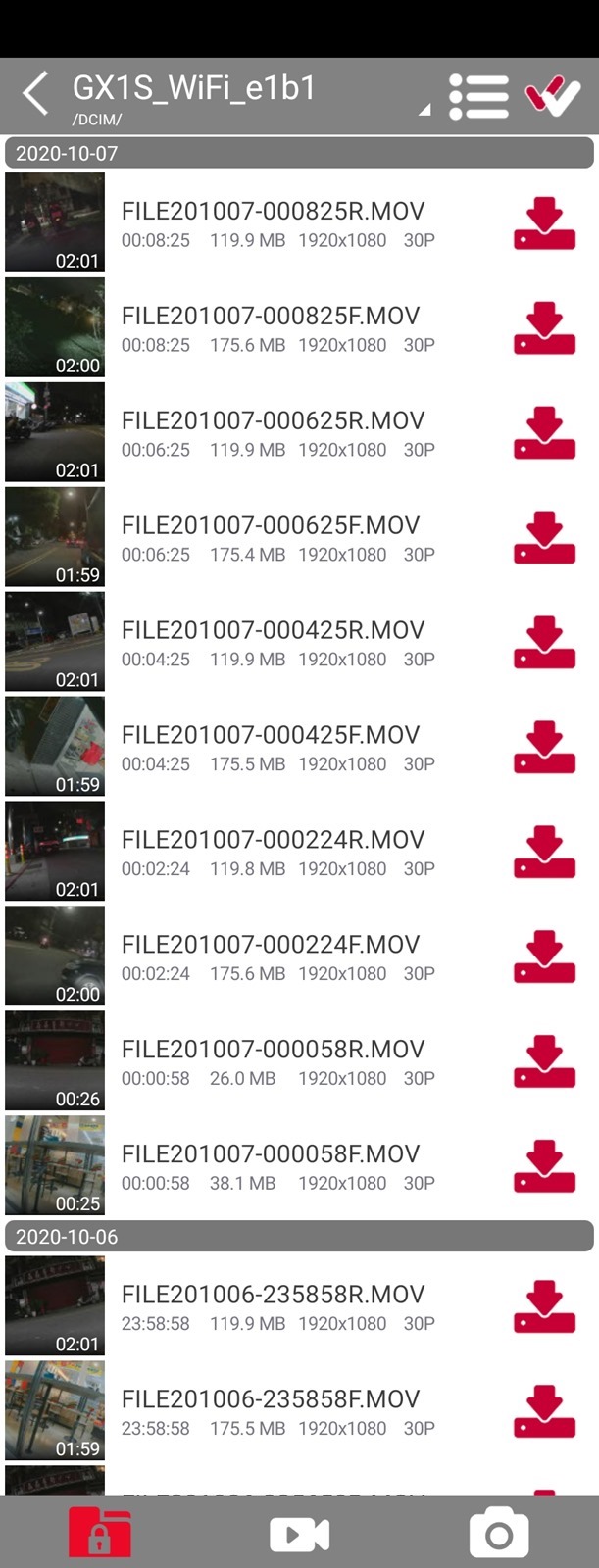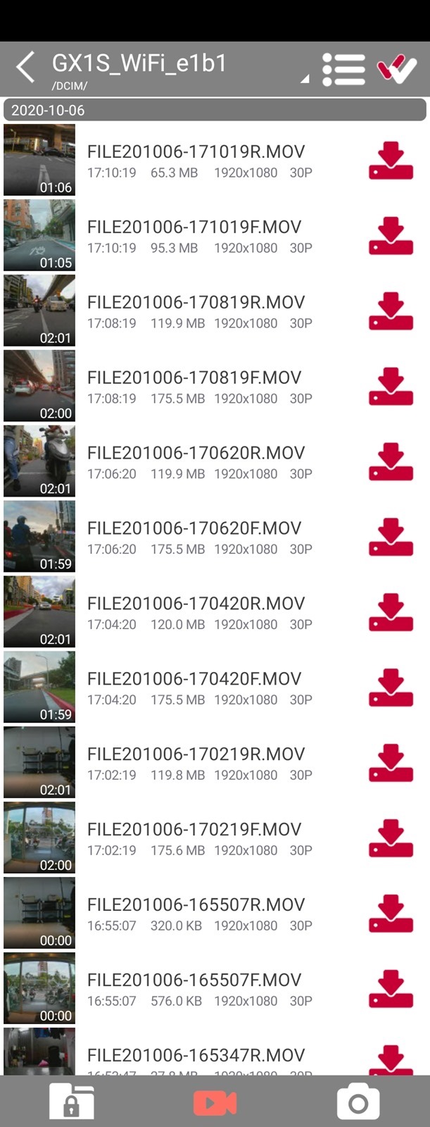 當然也可以直接從 APP 中把一段一段的影片拉出來保存或是使用。不知道大家有沒有用過其他牌子的行車記錄器?有些需要每一段檔案都分開儲存,如果錄了好幾天,按下載真的按到崩潰,而且萬一手殘,還有可以能會錯失重要檔案;不過 PX 大通 APP 設計可以一鍵下載,非常方便。