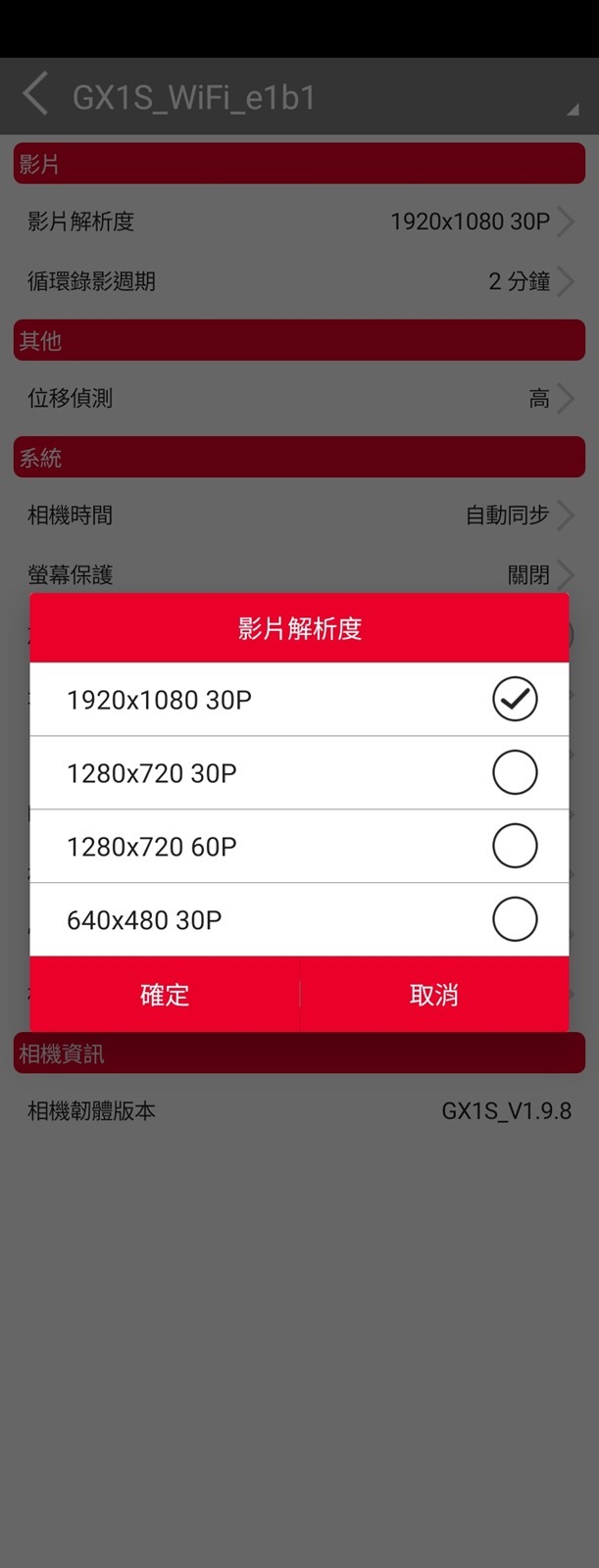 從 APP 中可以進行許多不同設定,可以開啟循環錄影週期或是調整週期,也可以調整影片的解析度,而且 APP 會依照手機的連線資訊自動校正 GX1s 主機的日期時間,確保錄影正常。